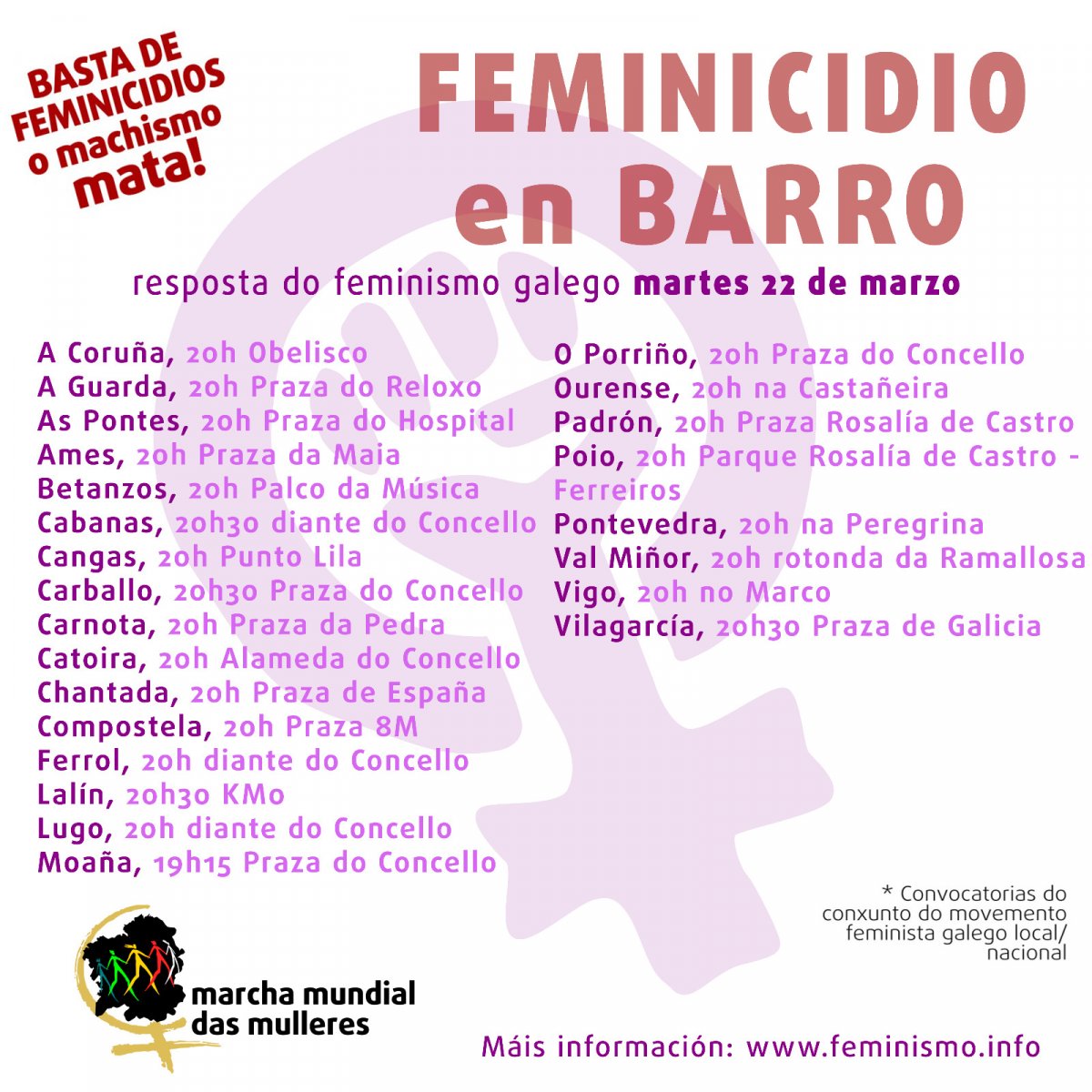 A CIG fai un chamamento a participar nas mobilizacións convocadas polo feminismo galego para este martes, 22 de marzo, en varias localidades do país, en repulsa ao feminicidio de Jessica Méndez, de 29 anos, asasinada en Barro polo seu veciño, que a acosaba incesantemente.