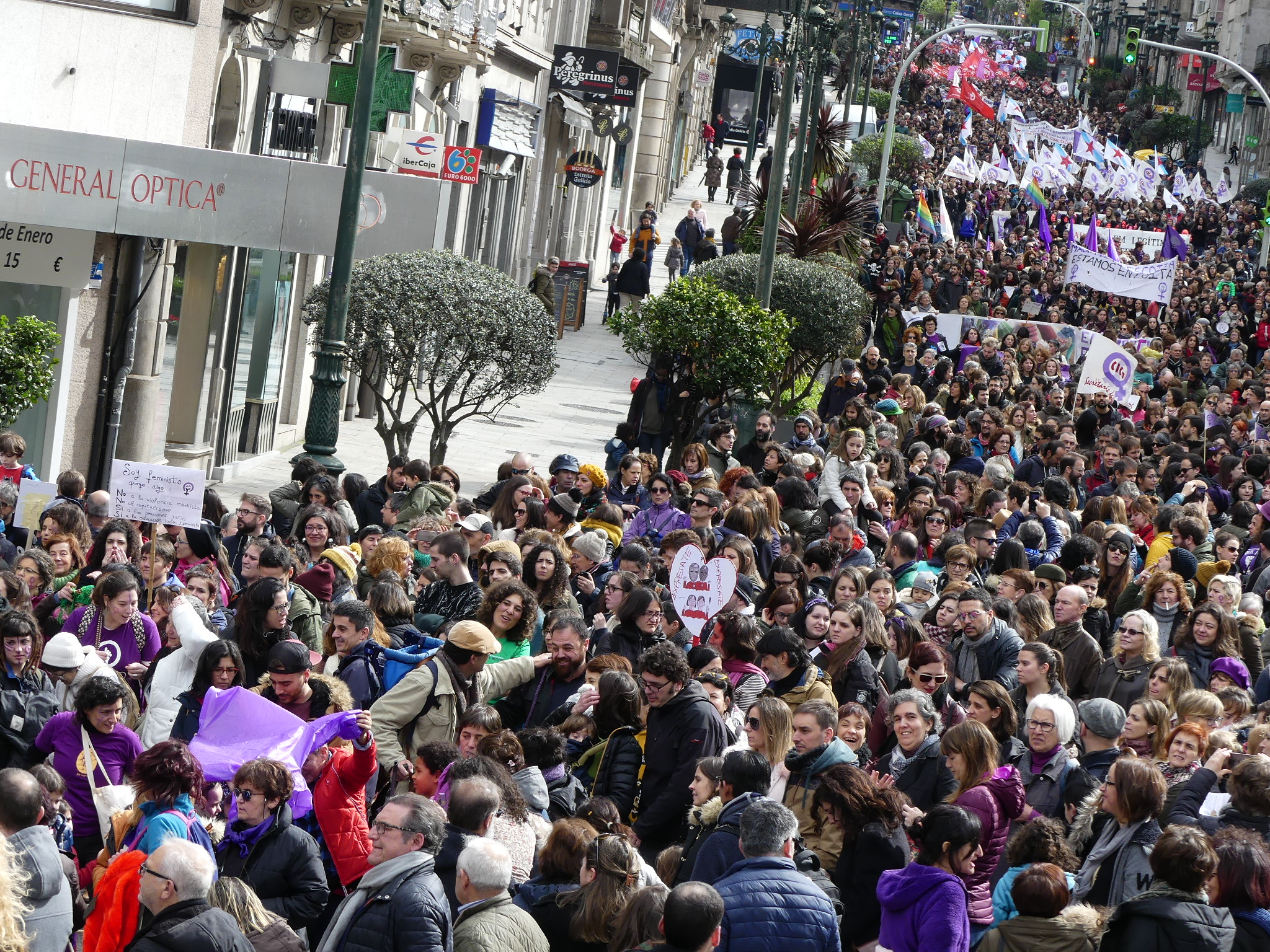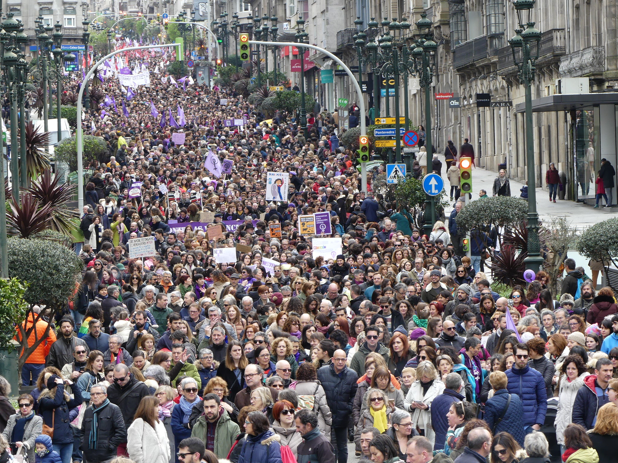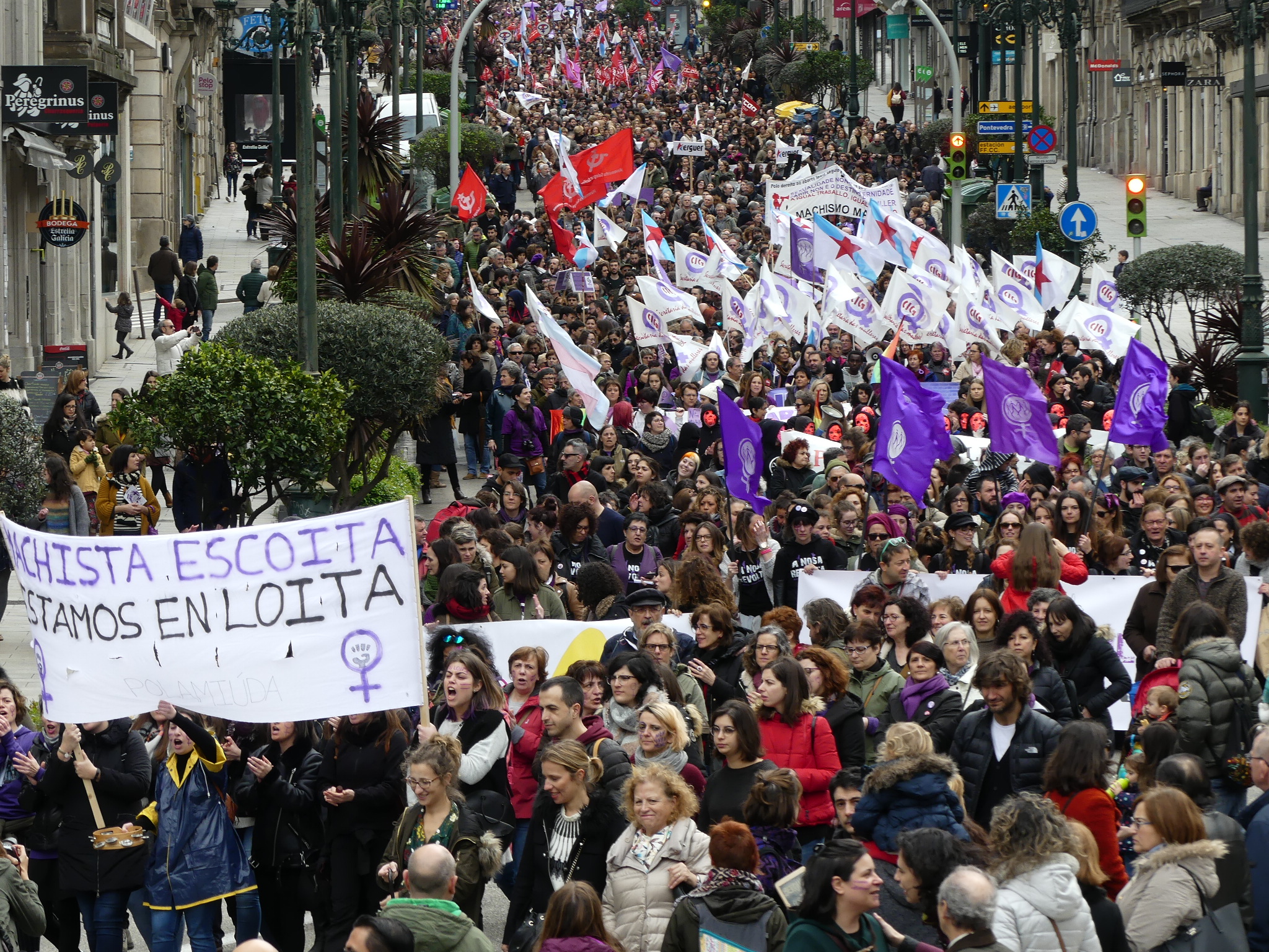 Unhas 30.000 persoas ateigaron este domingo as rúas de Vigo nunha das maiores mobilizacións da historia do feminismo galego para reivindicar un futuro de dignidade para as mulleres nunha sociedade igualitaria, xusta e libre. Tratouse dunha xornada histórica na que se fixo un chamamento a participar na folga internacional de mulleres convocada o vindeiro 8 de marzo.