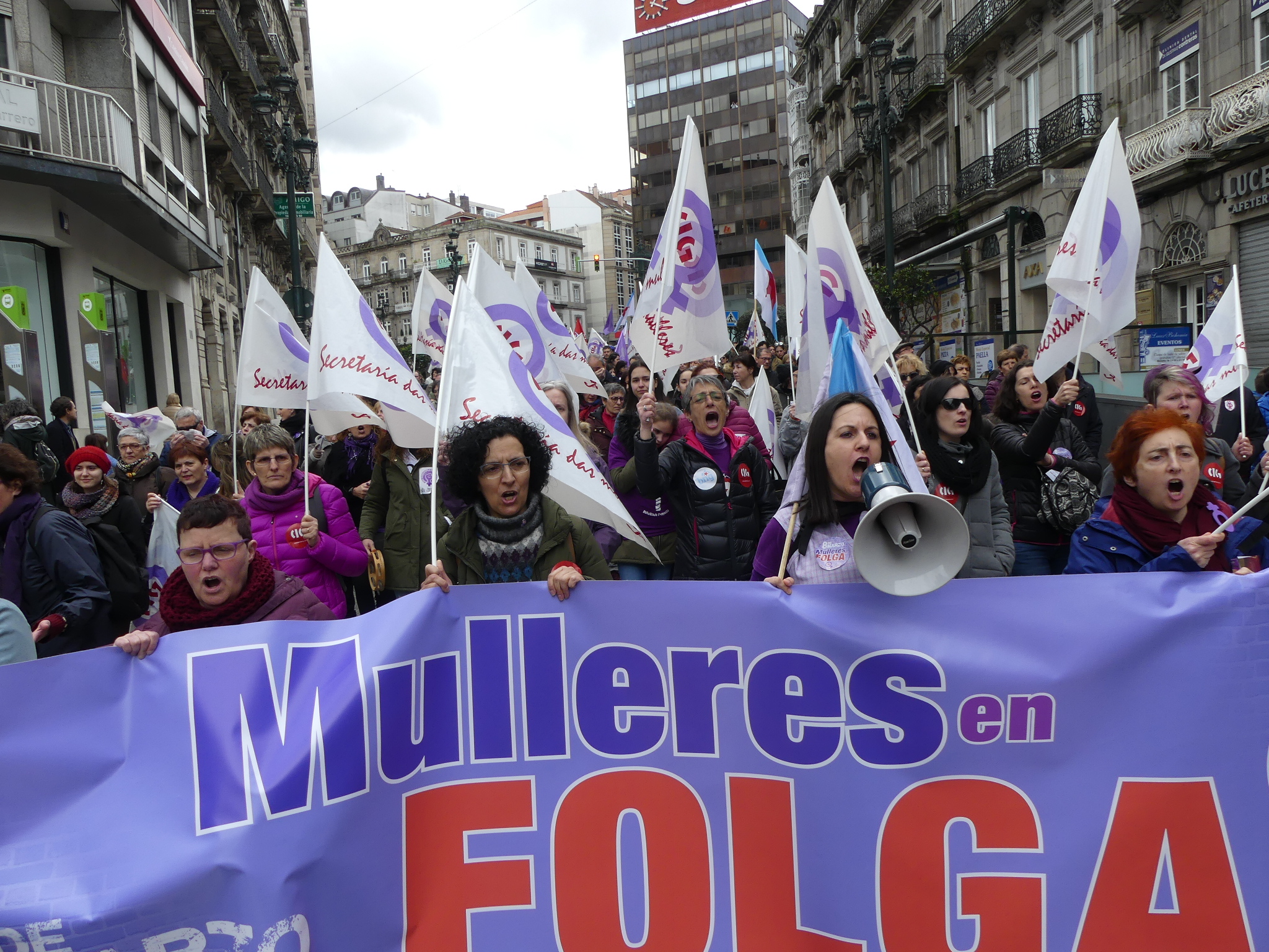 Facemos e faremos folga de mulleres até que unha reforma laboral con perspectiva verdadeiramente social e de xénero impoña a obrigatoriedade de convenios colectivos e transparentes que erradiquen a fenda salarial, a precariedade, o teito de cristal, a división do traballo por xéneros, o chan pegañento e a feminización da pobreza.