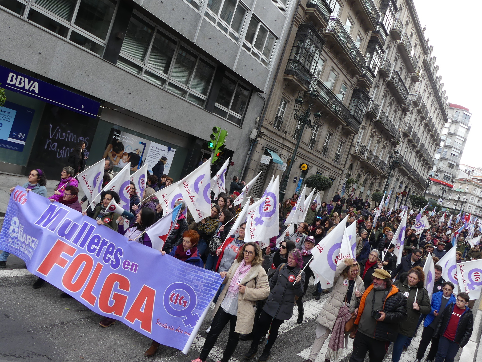 Ao mesmo tempo, incidiu en que a masiva participación que rexistrou a marcha de Vigo é un anticipo do que vai suceder en todo o país o vindeiro 8 de marzo, Día Internacional da Muller Traballadora, xornada na que hai convocada unha folga de mulleres e numerosas mobilizacións ao longo do día. “Temos que dar unha nova lección e volver a visibilizarnos: mulleres novas e maiores na rúa baixo unha mesma reivindicación; temos que secundar a folga laboral, de coidados e de consumo para transformar a vida das mulleres”.