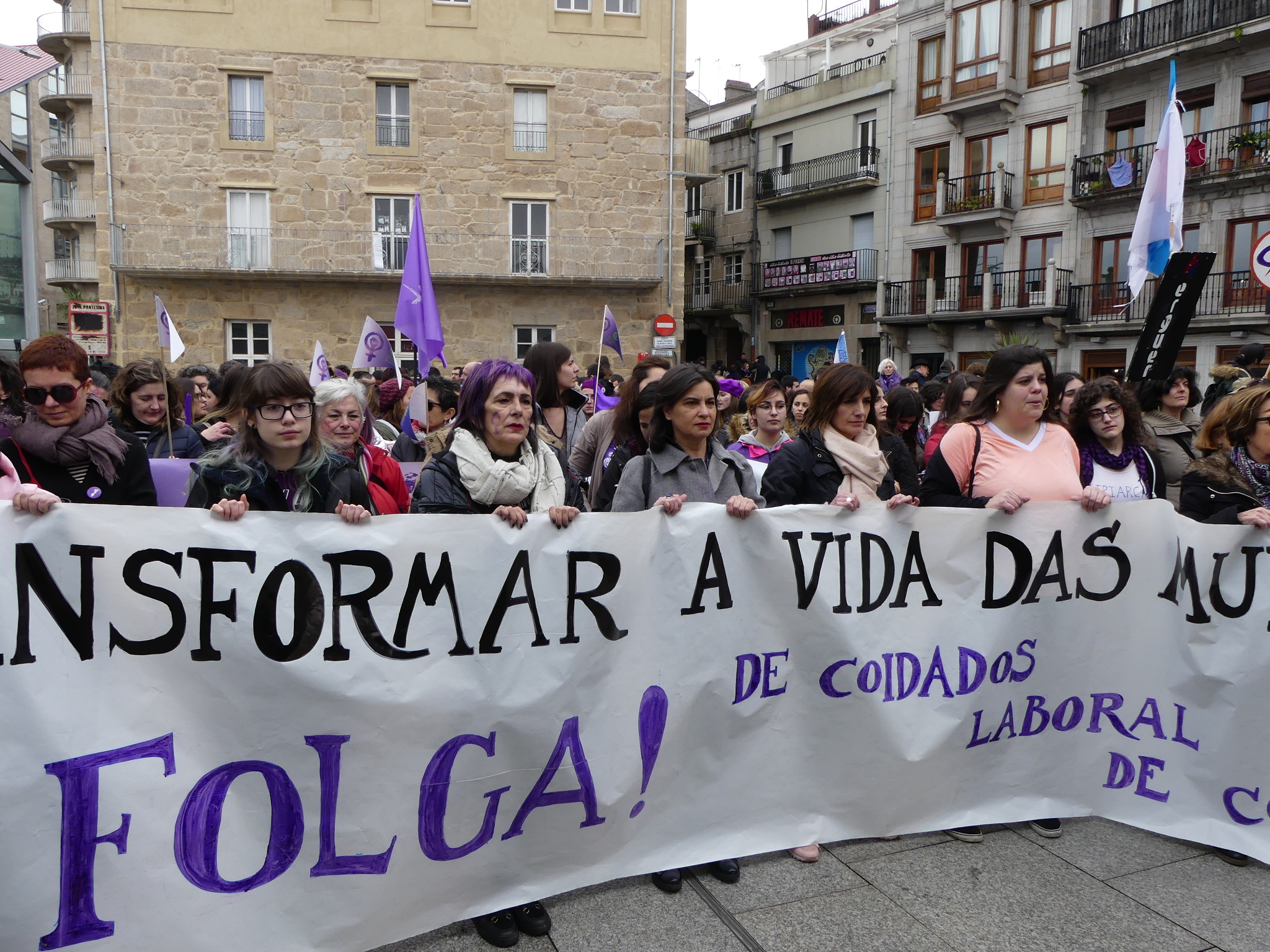Facemos folga de mulleres para que os coidados sexan asumidos polo conxunto da sociedade, para que a comunidade sirva como ferramenta para construír vidas dignas, para transformar radicalmente a forma en que nos relacionamos co traballo, para combater o capitalismo e construír alternativas de vida para todas; para exercermos o noso dereito a escoller en liberdade a nosa forma de vivir, de amar, de criar, de maternidade e de sexualidade, e para que todas e cada unha desas escollas conten con todas as garantías sociais para podermos desenvolvelas.