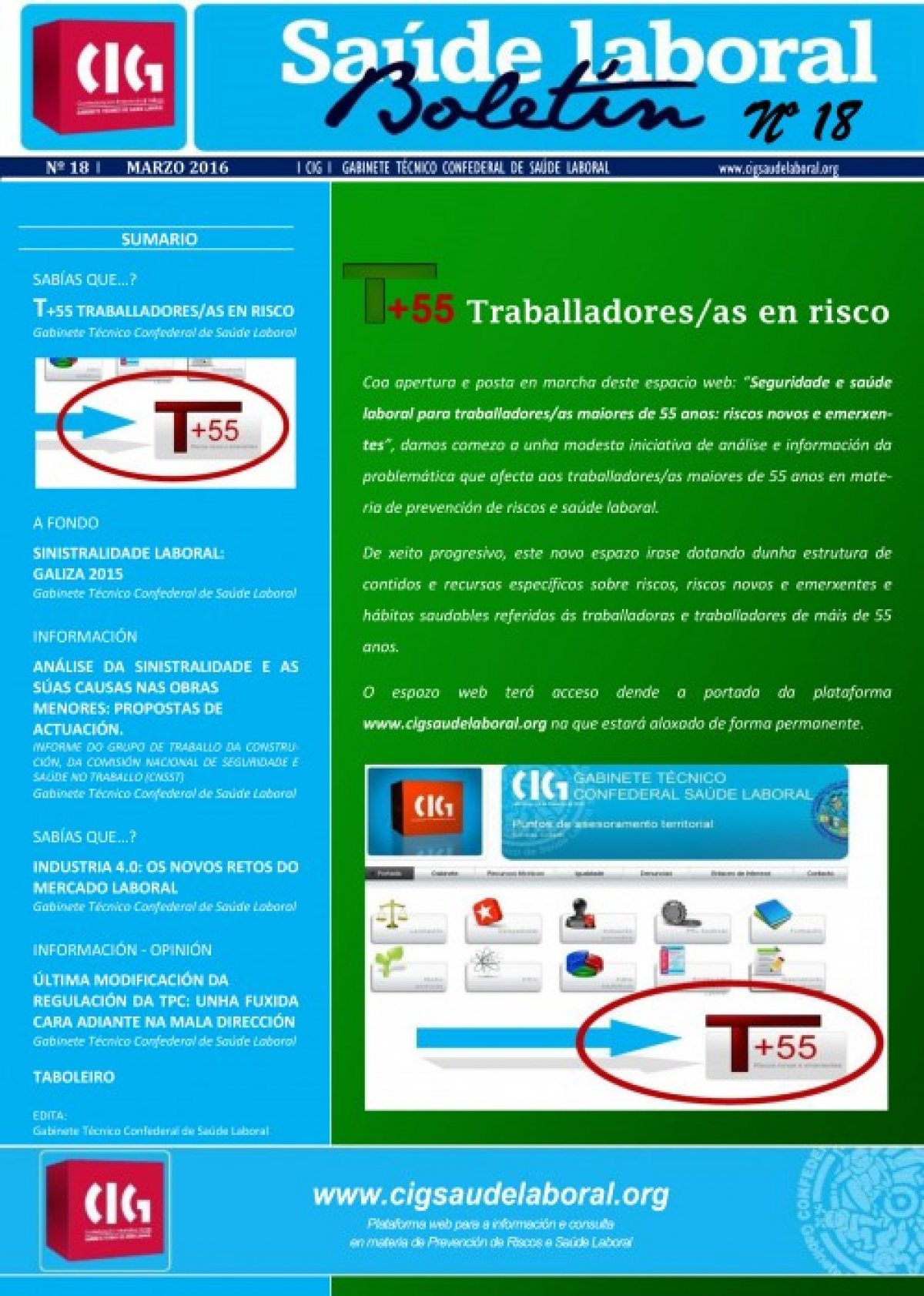 Por iso entendeu necesario abrir este novo espazo, como unha forma de contribuír á correcta identificación e delimitación desta importante problemática. Espazo que, en todo caso, e segundo explica no propio Boletín, “se irá dotando dunha estrutura de contidos e recursos específicos sobre riscos, riscos novos e emerxentes e hábitos saudábeis referidos ás traballadoras e traballadores de máis de 55 anos”.