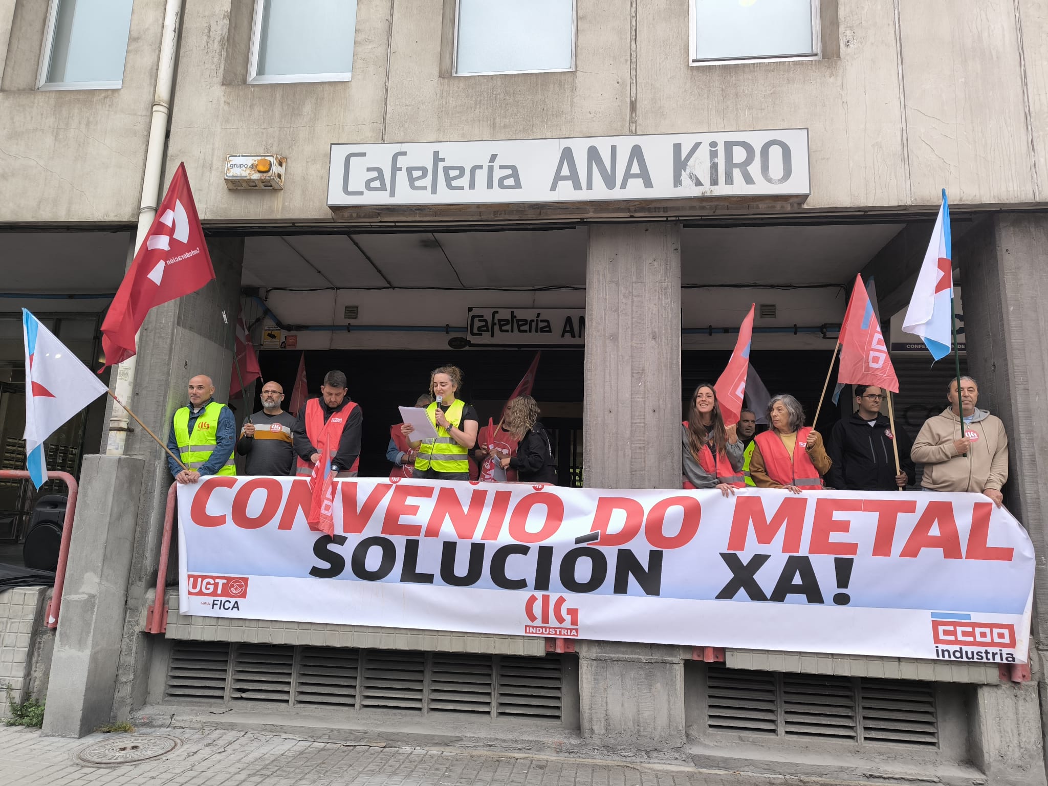 Traballadores e traballadoras do metal concentráronse na tarde deste mércores diante da sede da Confederación de Empresarios/as da Coruña en resposta ao bloqueo patronal á negociación do convenio colectivo e para exixir un calendario áxil de reunións que permitan avanzan nun acordo e actualizar e mellorar as condicións laborais e salariais do sector.