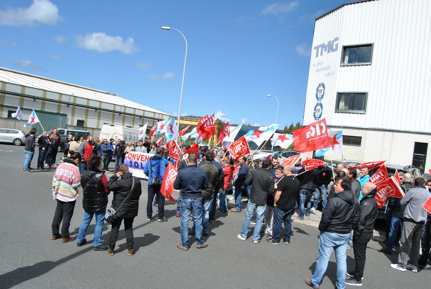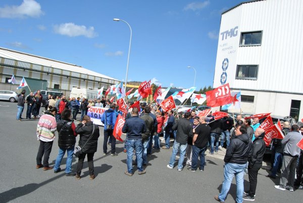 O metal da provincia da Coruña iniciou este mércores un novo calendario de mobilizacións ante o bloqueo da negociación do convenio de siderometalurxia por parte da patronal e para demandar melloras salariais e sociais. Desta volta, delegadas e delegados das tres centrais sindicais realizaron unha concentración diante das instalacións de TMG no Polígono de Río do Pozo, en Narón.