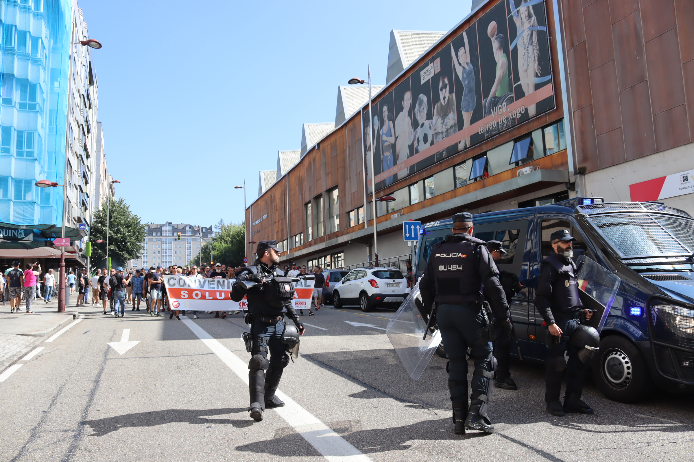 Dende a central condenan este xeito de proceder e queren deixar moi claro que “non van conseguir amedrentarnos, por moito que a patronal instigue este tipo de actuacións policiais coas súas declaracións intentando criminalizar a loita dos traballadores/as”. Ao mesmo tempo, anuncian que as xornadas de folga previstas para este venres 7 e para os vindeiros días 12 e 13 de xullo continuarán, “porque non imos permitir a chantaxe do empresariado, que di que só se sentará a negociar coa condición de que suspendamos os paros”.