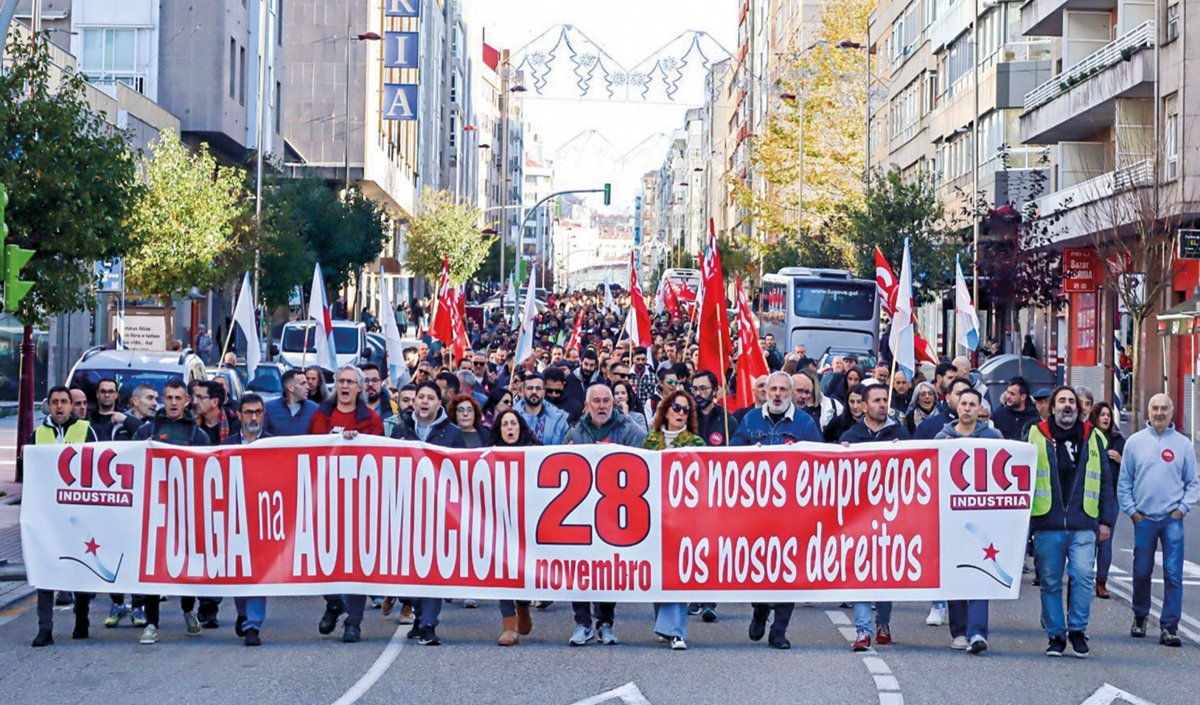 A histórica xornada de folga convocada pola CIG o pasado 28 de novembro para reclamar medidas urxentes ante a grave crise que atravesa a automoción galega tivo un seguimento notable por parte das persoas traballadoras do sector, que deron unha “auténtica lección de unidade, de forza e de dignidade” en defensa do emprego e dunhas condicións laborais dignas.