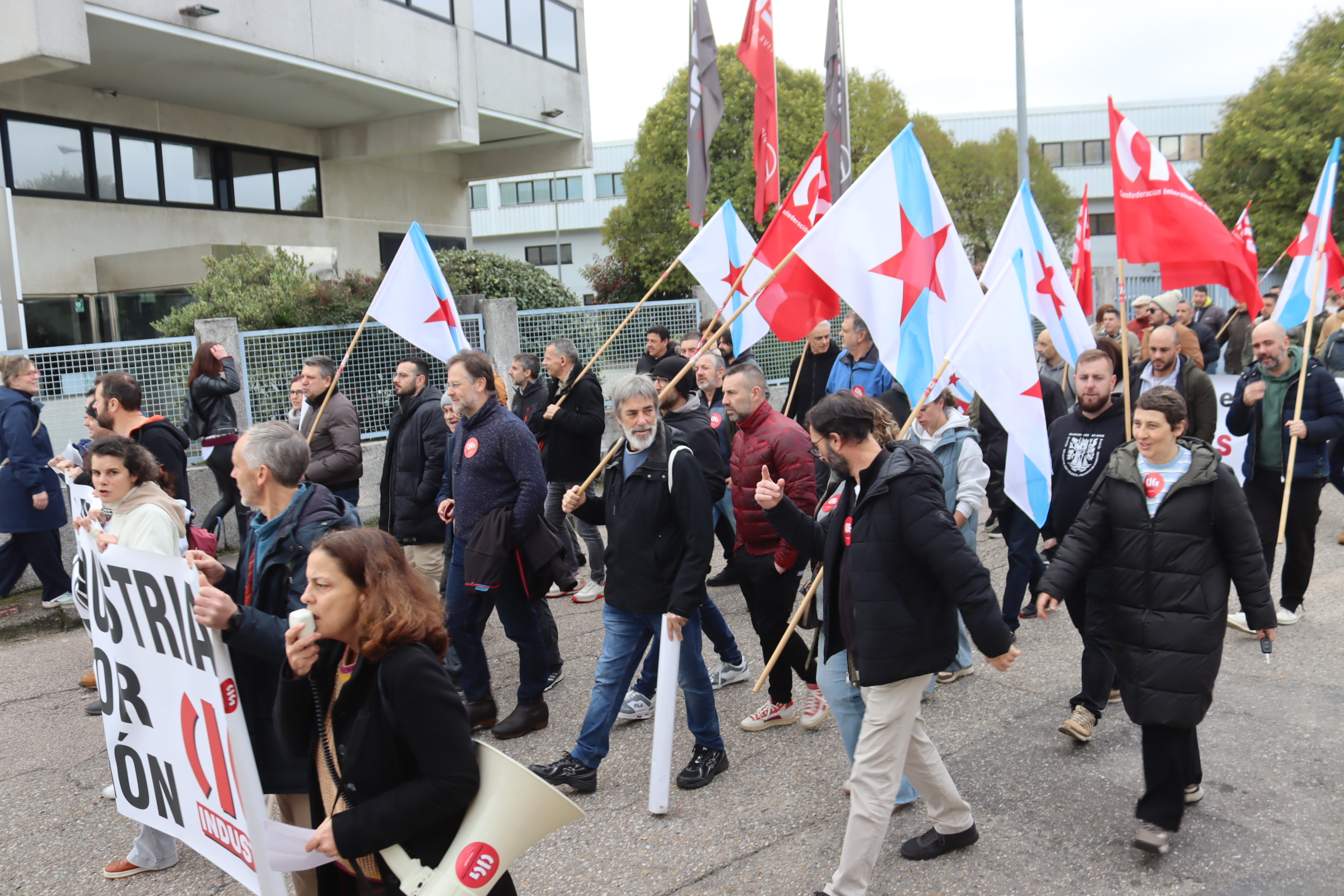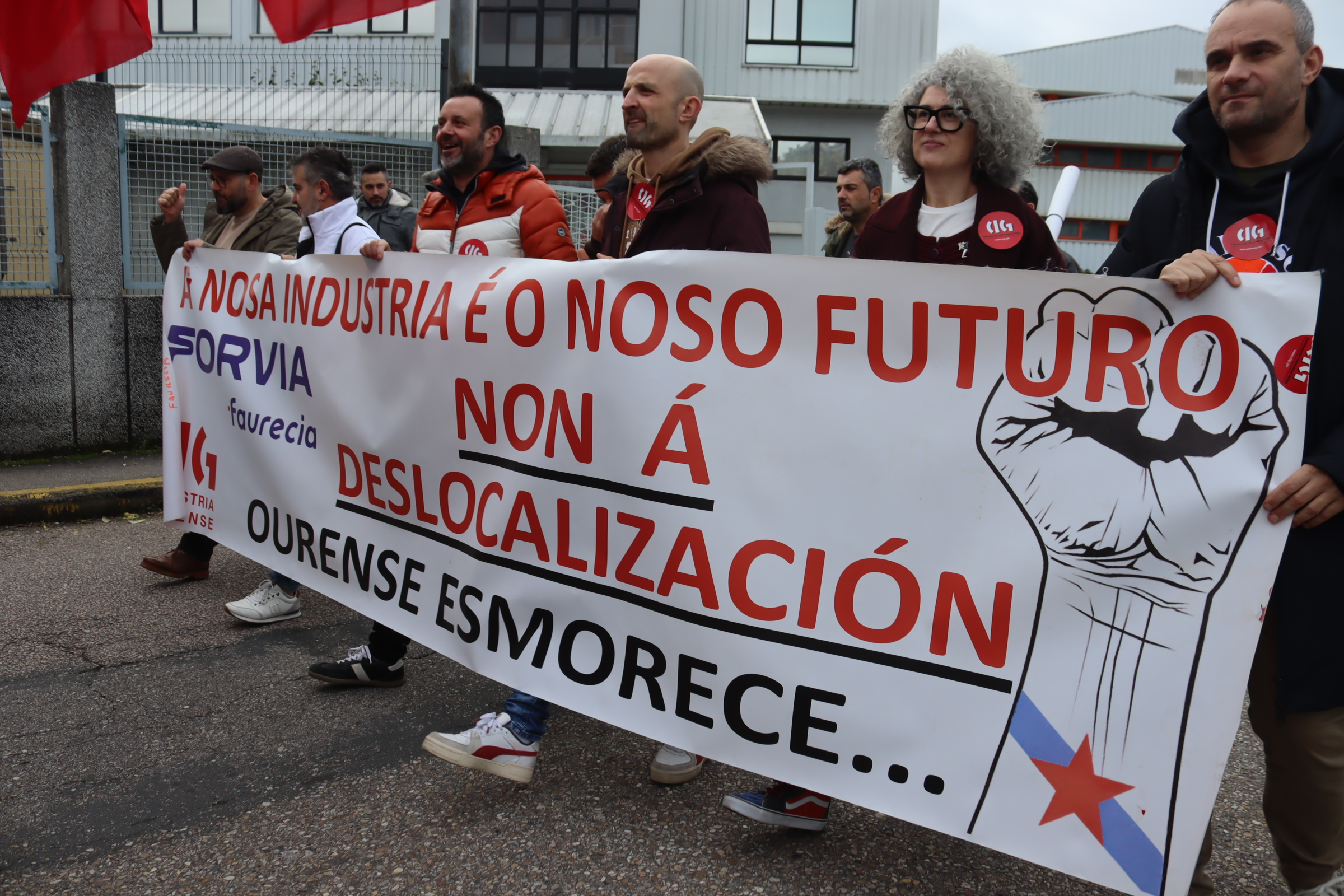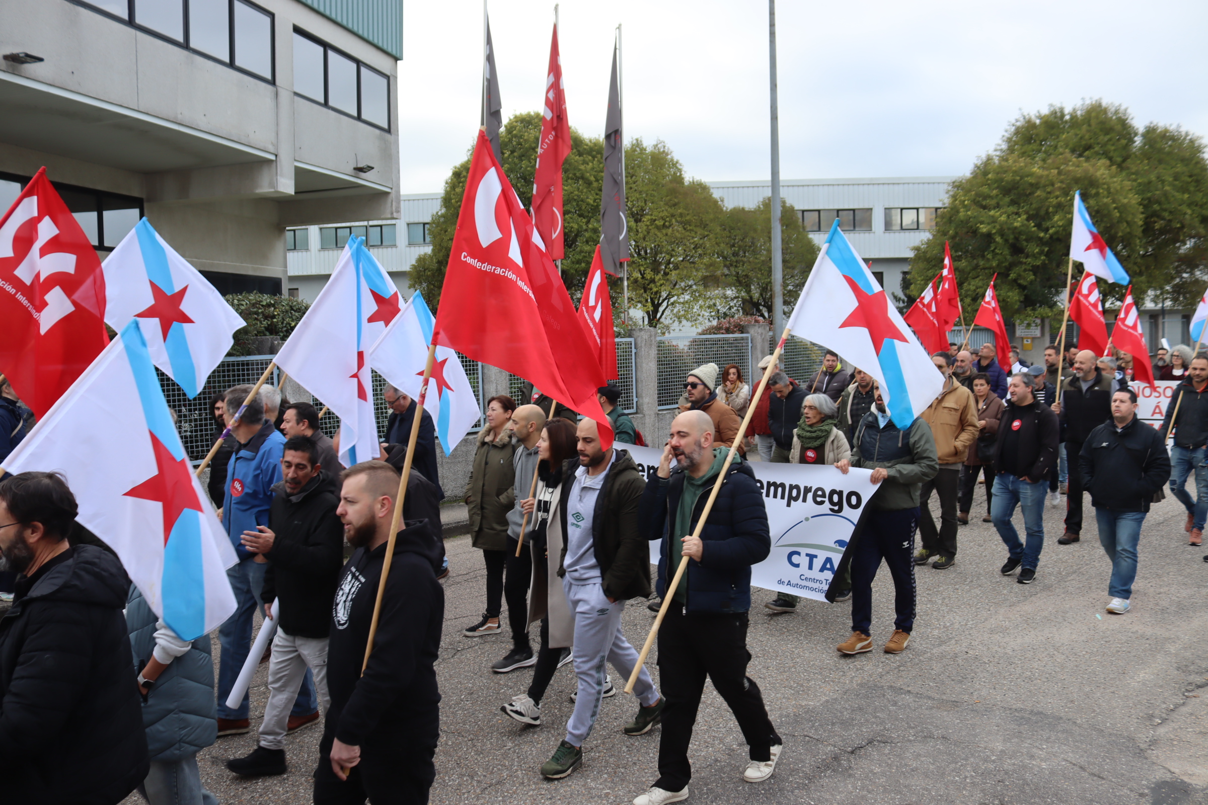 Na marcha que arrincou pasadas as 11:00 horas dende as instalacións de Akwel, empresa que vén de aplicar un ERE extintivo para 89 persoas, participaron persoas traballadoras e delegadas sindicais das principais compañías do sector de Vigo, Pontevedra e Ourense, ademais do propio secretario xeral da CIG, Paulo Carril.