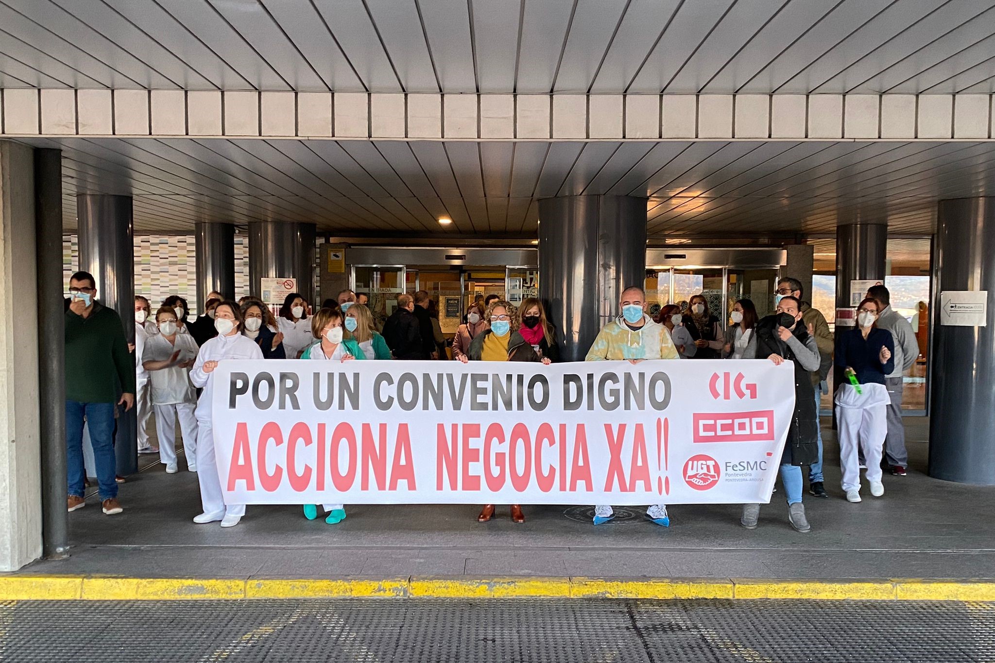 As concentracións, que foron promovidas pola CIG, CCOO e UGT e aprobadas en asemblea polas/os traballadoras/es, celebráronse diante das entradas principais dous dos centros hospitalarios a partir das 10:00 horas para visibilizar o conflito laboral.