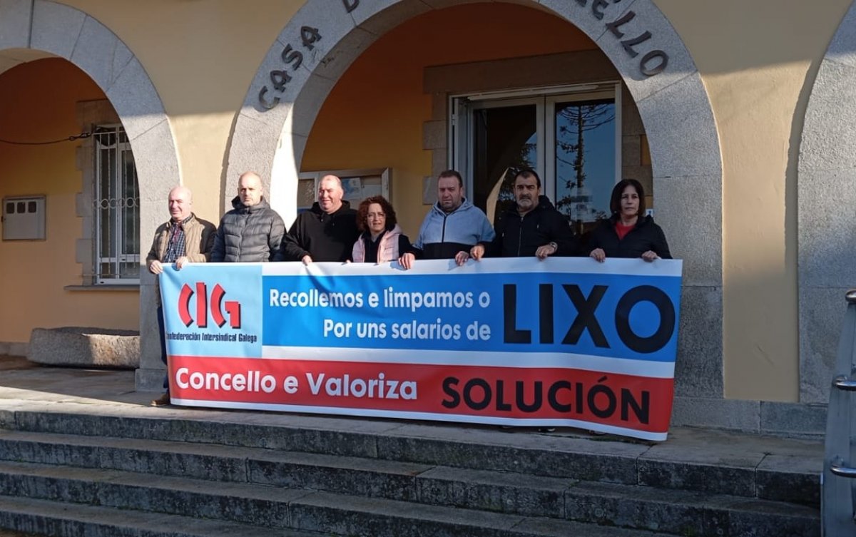 Persoal do servizo de recollida do lixo e limpeza viaria das Pontes concentrouse este mércores diante do Concello, coincidindo coa celebración do pleno municipal, para reclamar axilidade na elaboración dos novos pregos e unhas condicións laborais e salariais dignas. Aproveitando a sesión plenaria, o persoal tamén accedeu ao interior da casa consistorial para escoitar a resposta do Concello a unha pregunta sobre a situación do servizo.