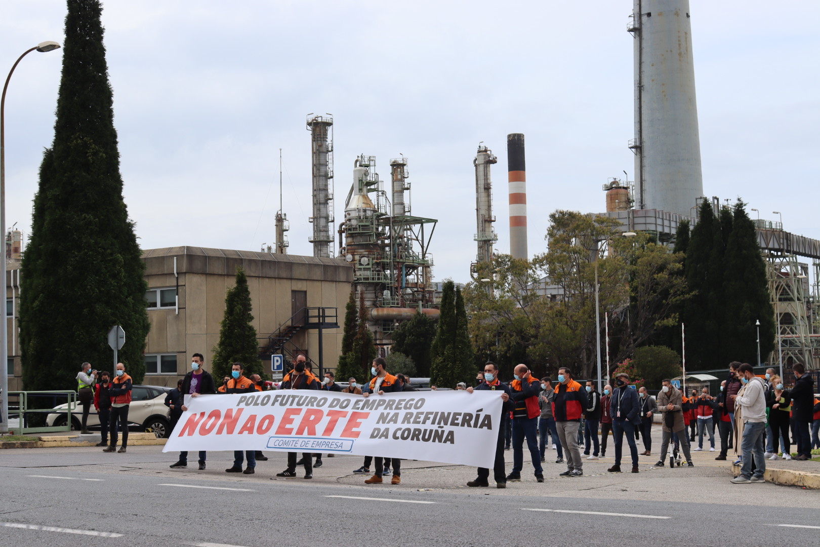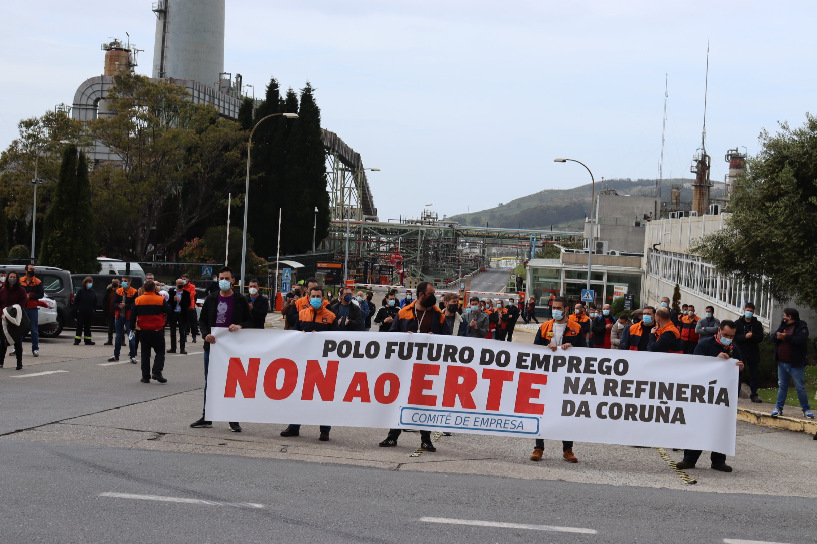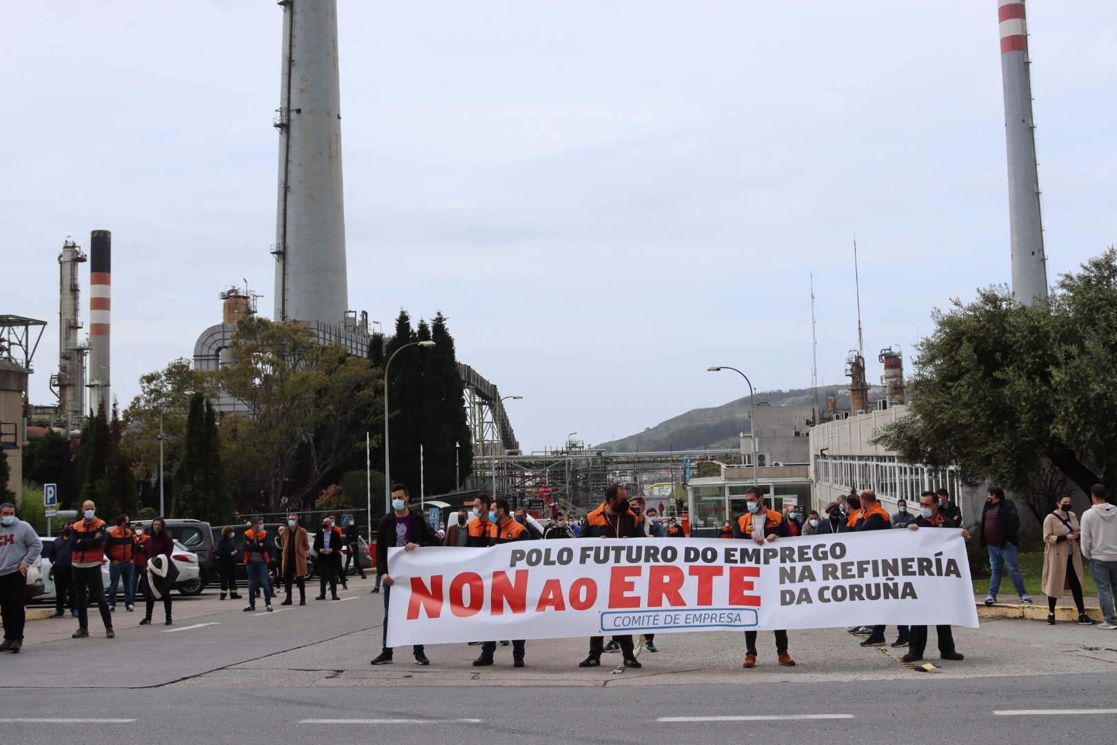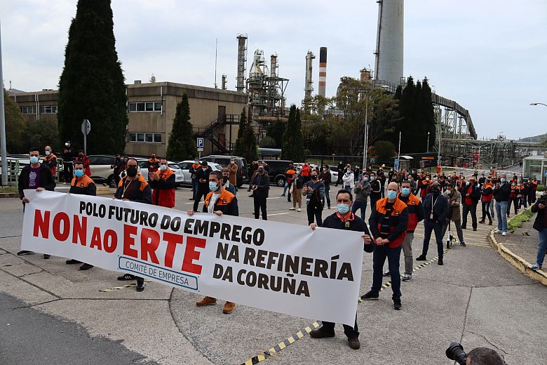 Traballadores e traballadoras da refinería de Repsol na Coruña iniciaron este venres mobilizacións en rexeitamento á decisión da empresa de aplicar un ERTE de seis meses de duración que afectaría a 212 persoas. Esta primeira protesta foi acordada na reunión extraordinaria que celebrou o comité tras da comunicación da empresa e nela xa se adiantou que a mobilización se repetirá os venres das dúas próximas semanas.