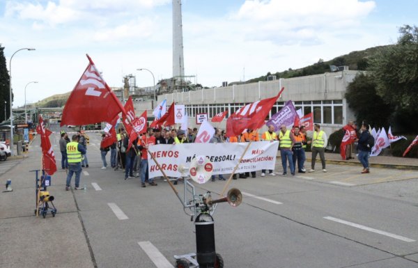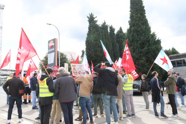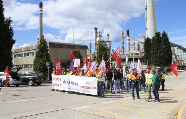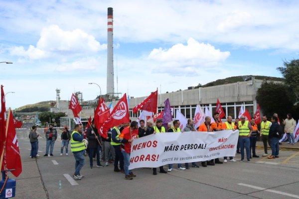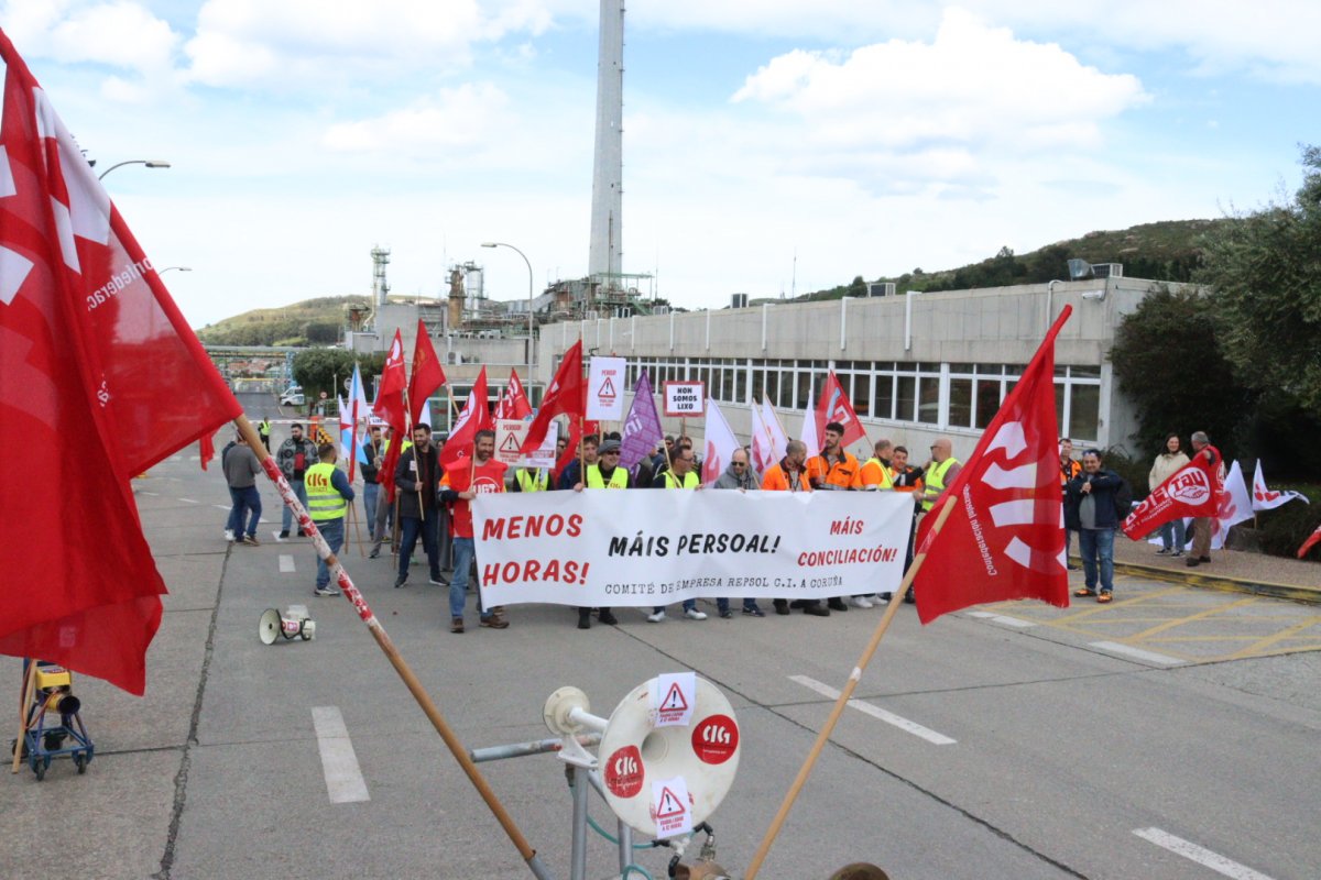 O persoal da refinería de Repsol protesta contra as excesivas prolongacións de xornada