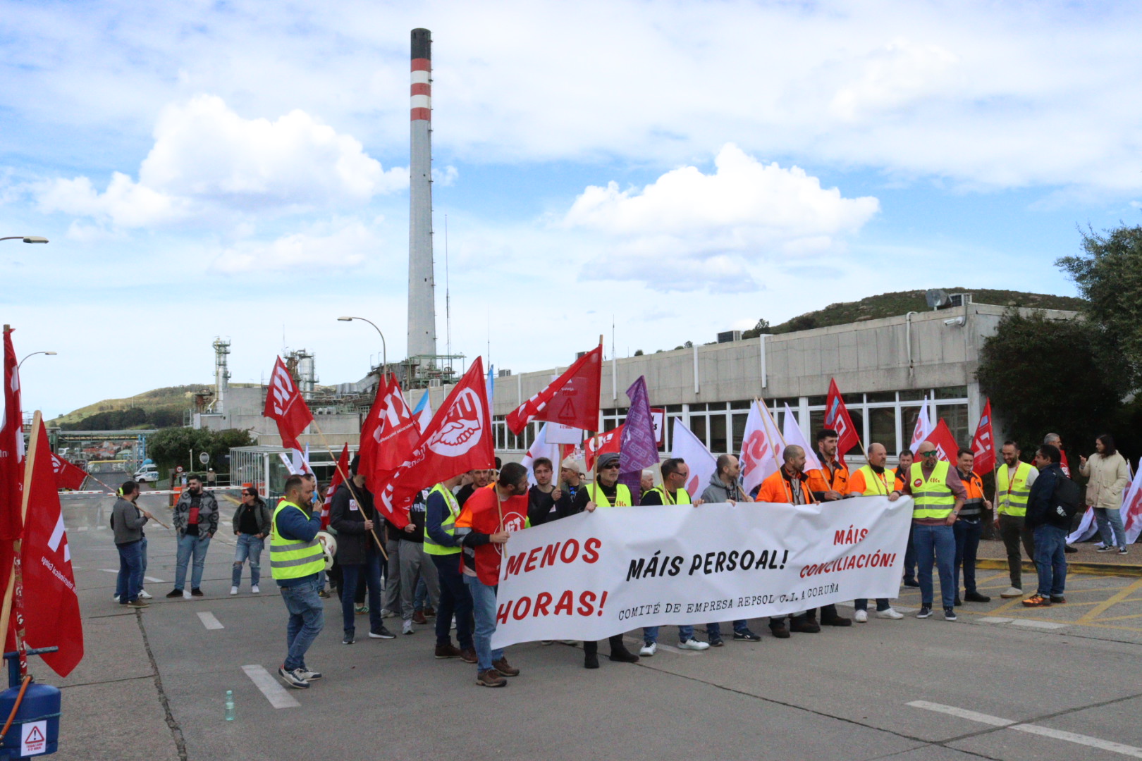 Traballadoras e traballadores da refinería de Repsol na Coruña mobilizáronse este xoves, coincidindo co cambio de quenda, en protesta polo excesivo número de horas “ás que a empresa nos está sometendo”. Denuncian que, no ano 2024, no complexo industrial da Coruña ser realizaron máis de 30.000 horas extraordinarias entre todos os departamentos da refinería.