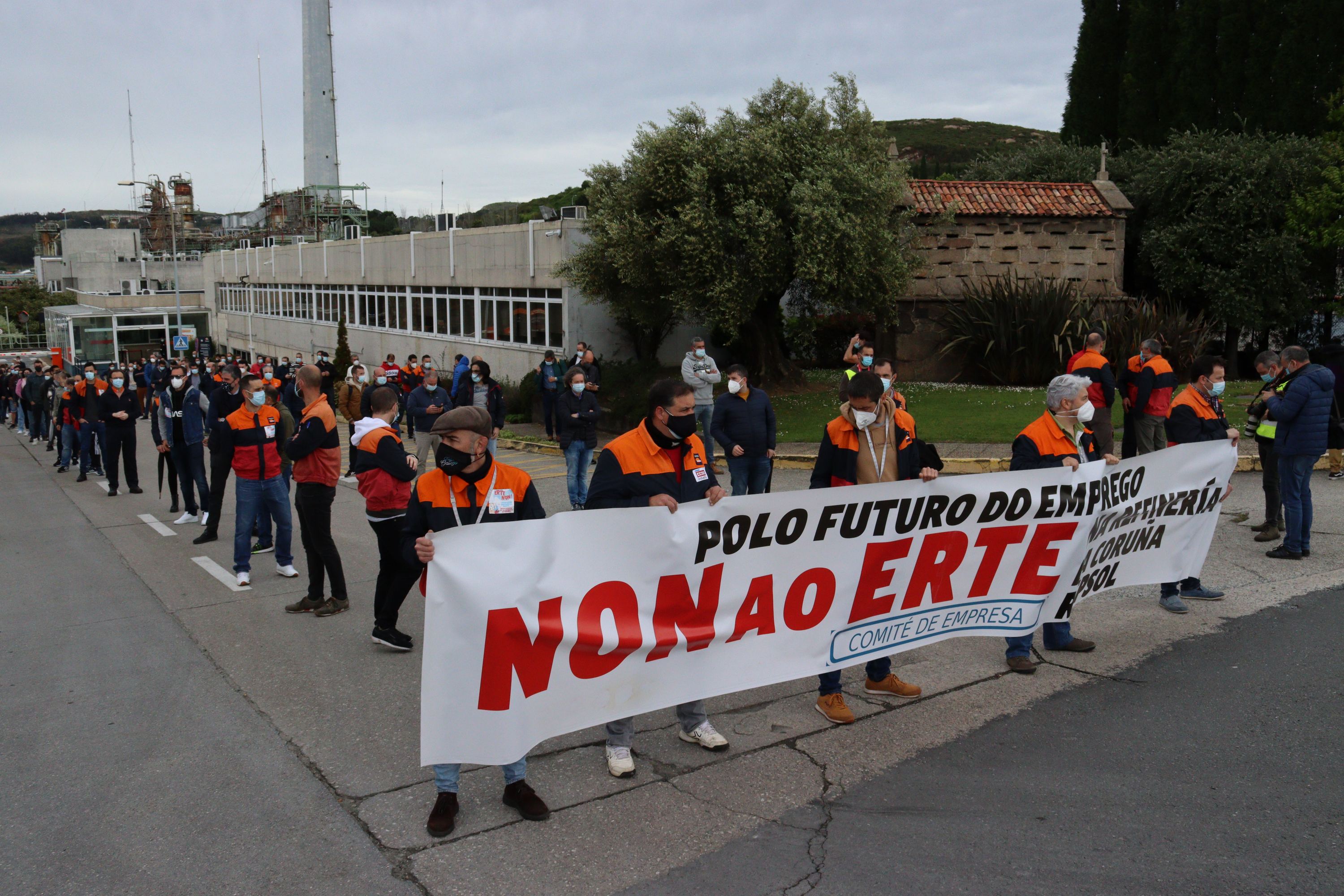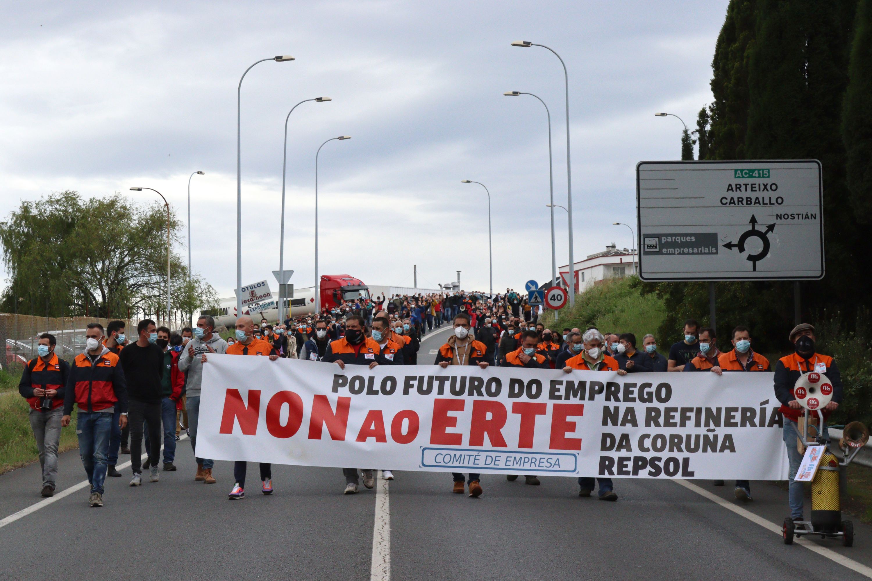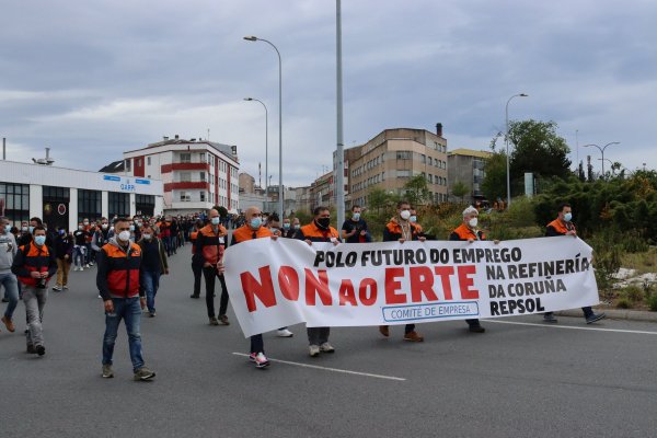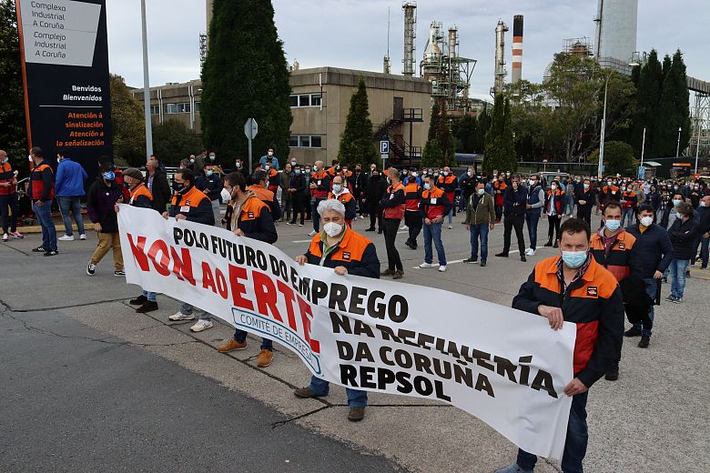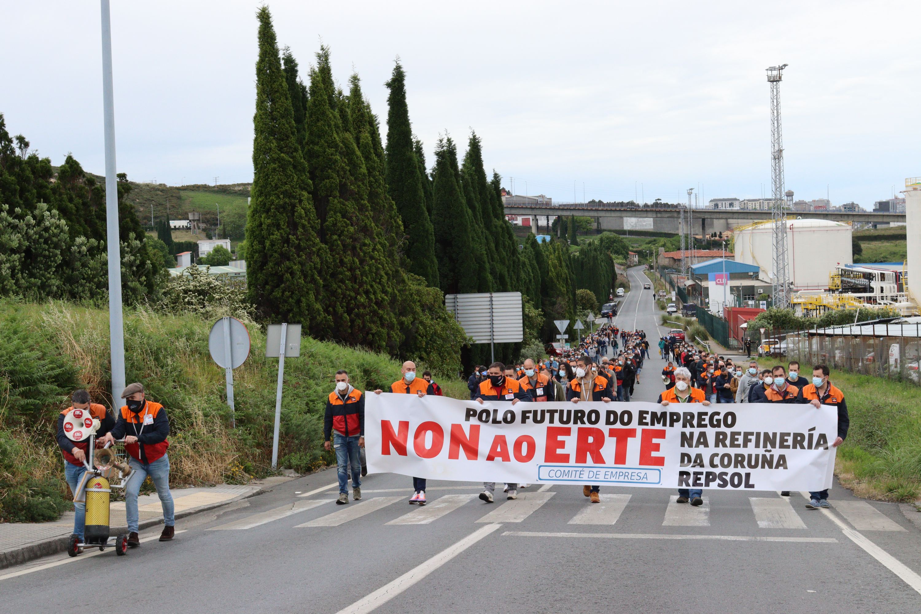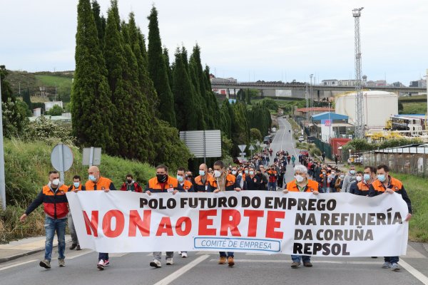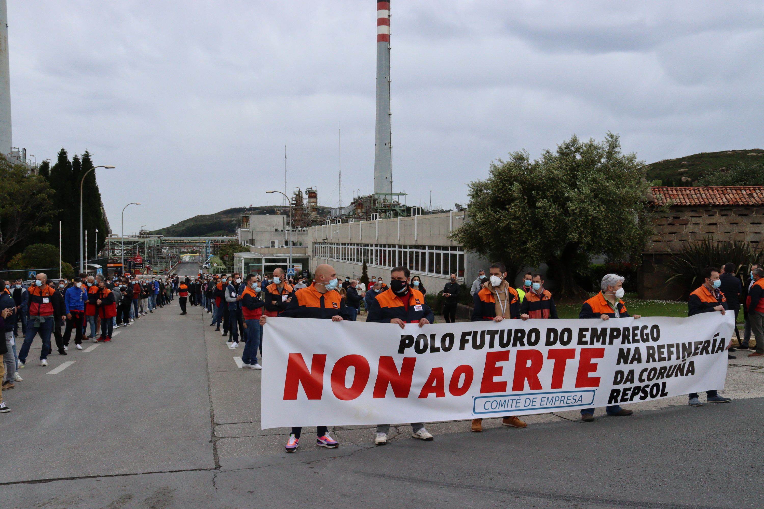 Traballadores e traballadoras da refinería de Repsol continuaron este venres co calendario de mobilizacións en rexeitamento ao ERTE que a empresa quere aplicar durante seis meses a 212 persoas, así como para demandar da petroleira que faga os investimentos necesarios para adaptar as instalacións ás novas esixencias da Lei de Transición Enerxética, garantindo así a súa viabilidade.