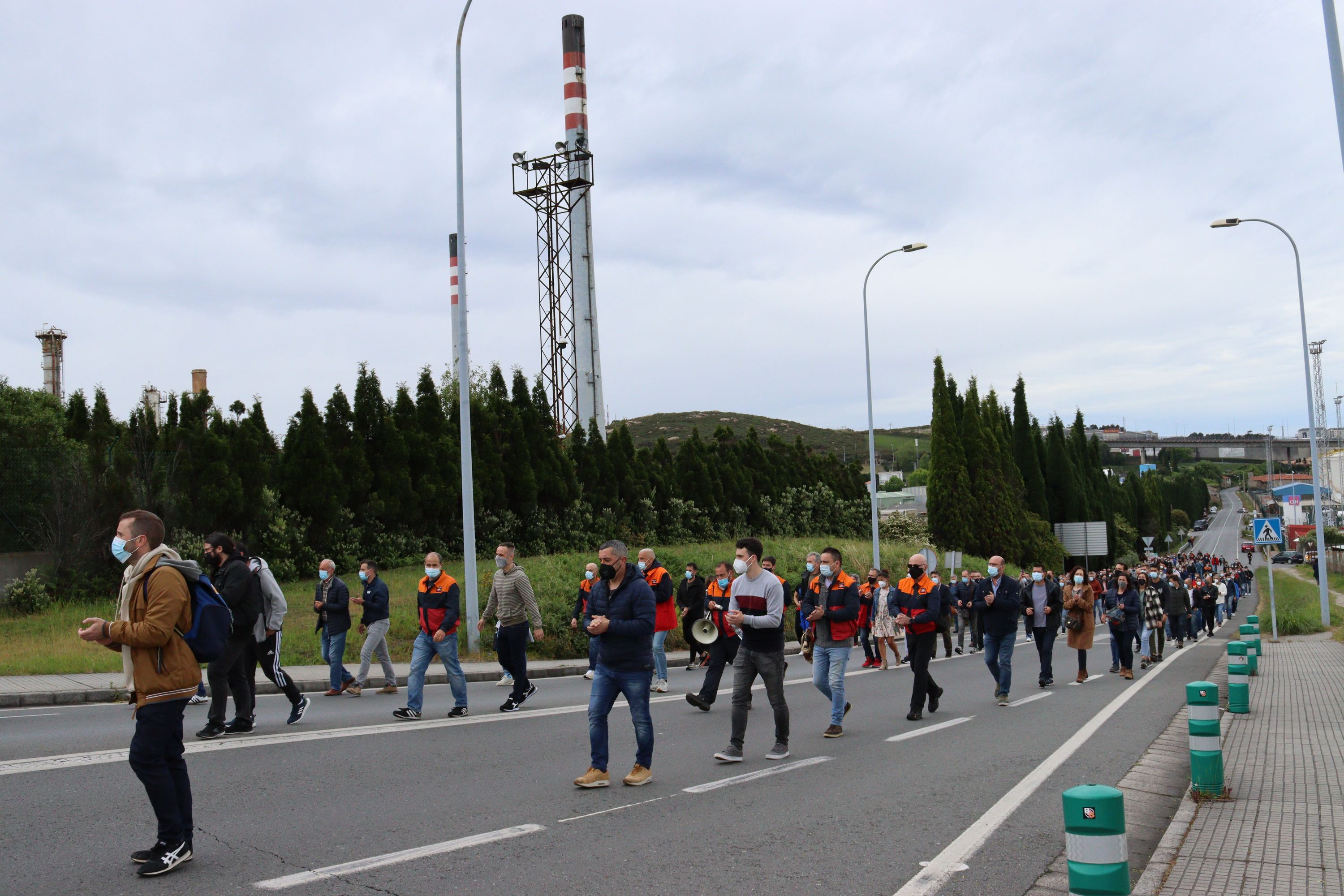 A protesta desenvolveuse ás portas da refinería e fíxose tras da reunión do período de consultas celebrada esta mañá, no que a sección sindical da CIG volveu manifestar a total oposición a unha medida que cualifica de "fraudulenta" e para a que non existen causas nin produtivas nin organizativas.
