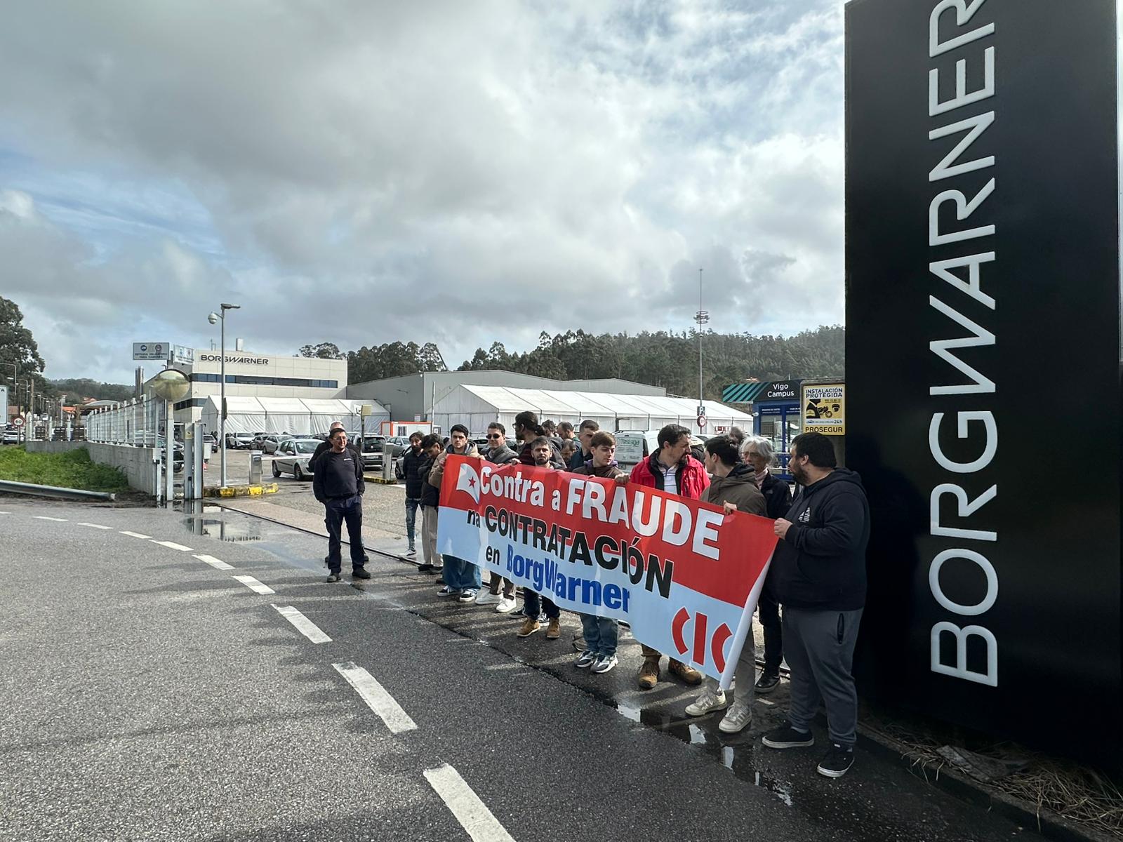 De xeito que desenvolveu unha concentración ás portas de Borgwarner en Zamáns (Vigo), empresa que é responsable da súa situación irregular, para darlle visibilidade ao conflito e pedir a solidariedade do persoal da factoría, “xa que a súa loita é a loita do sector da automoción na procura de salarios xustos e condicións laborais dignas; e porque ademais non pode haber persoal de primeira categoría e persoal de segunda (moito máis barato), que mesmo pon en perigo a estabilidade dos cadros de persoal das empresas matrices”.