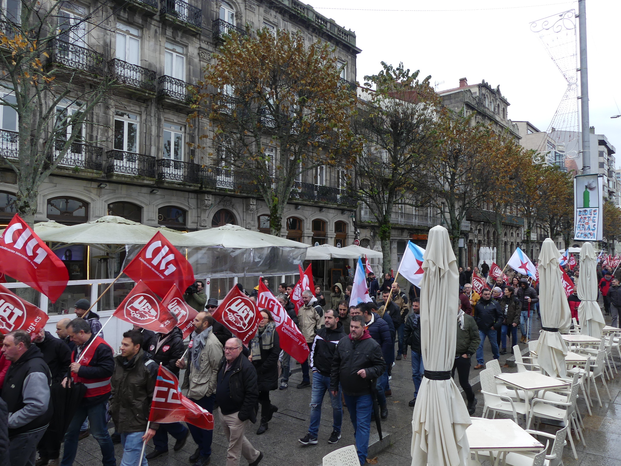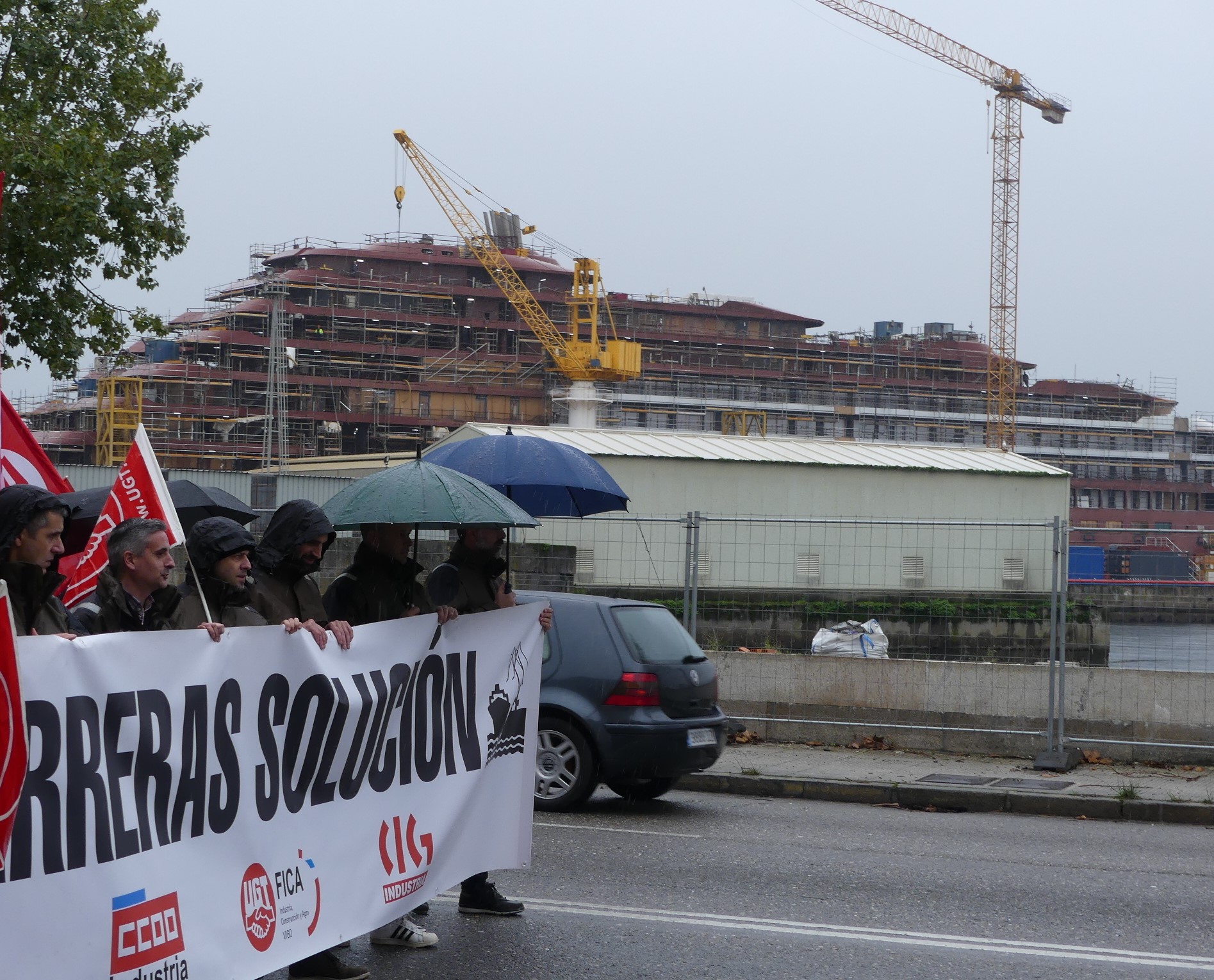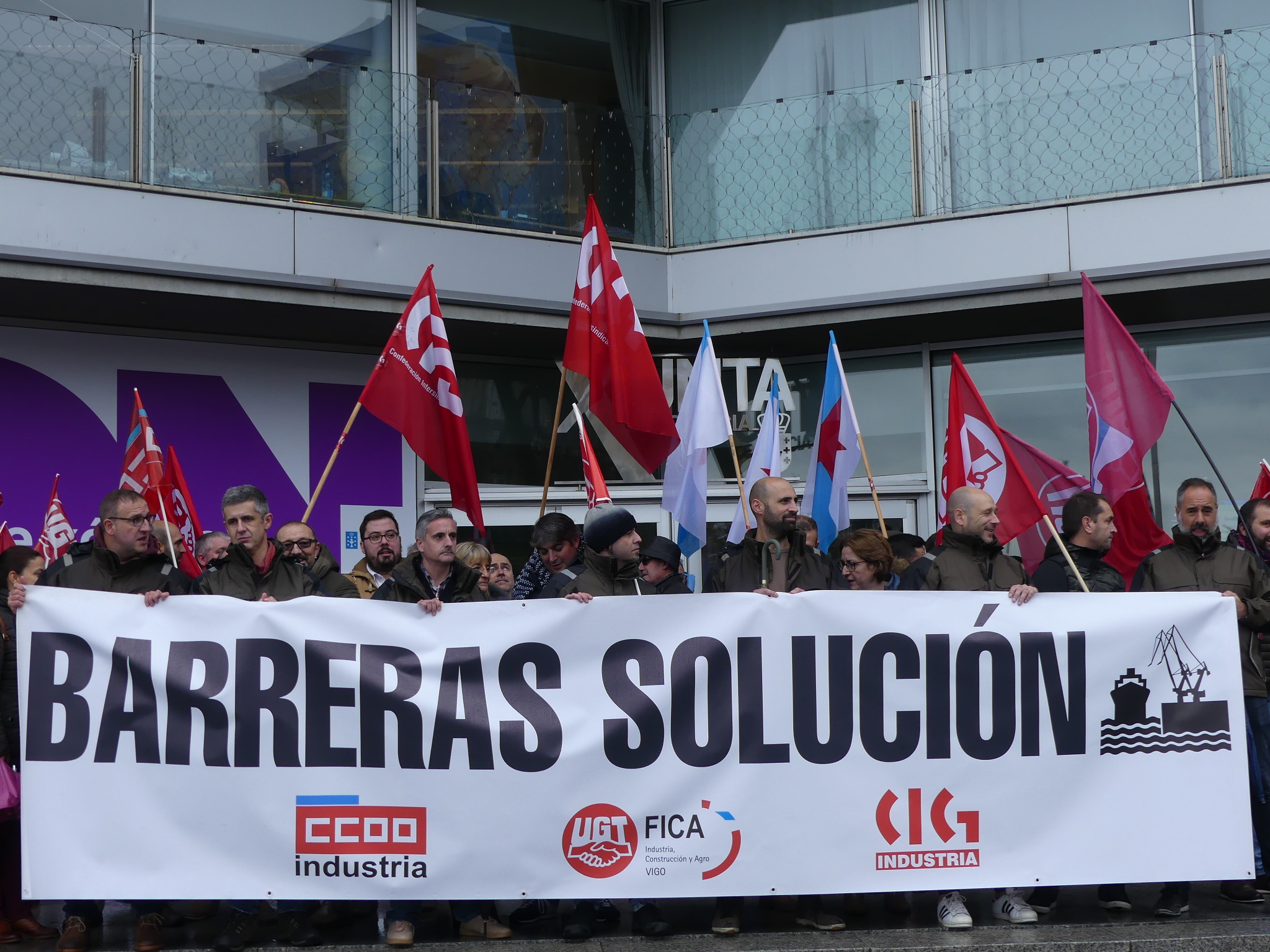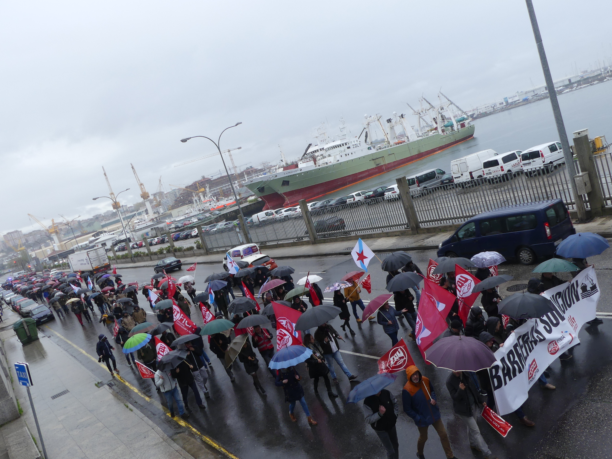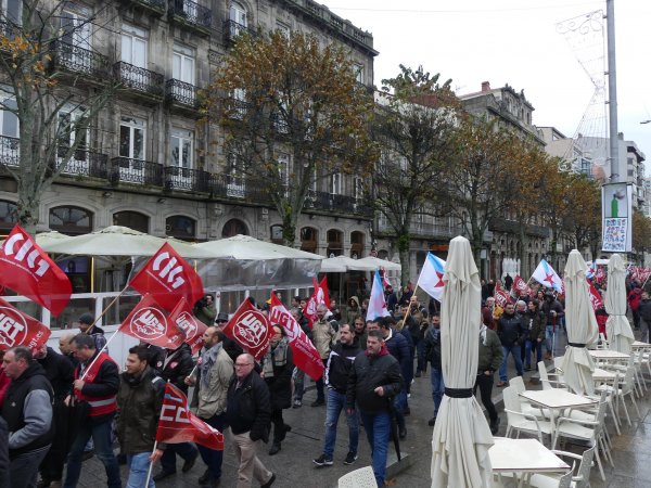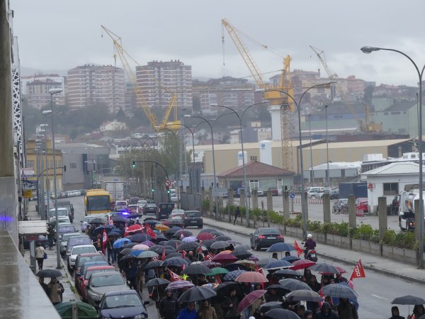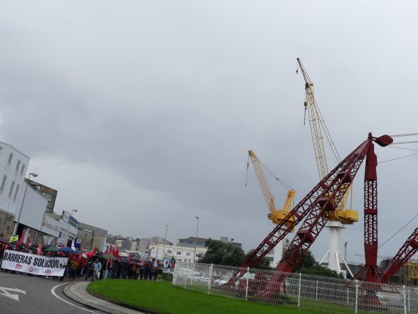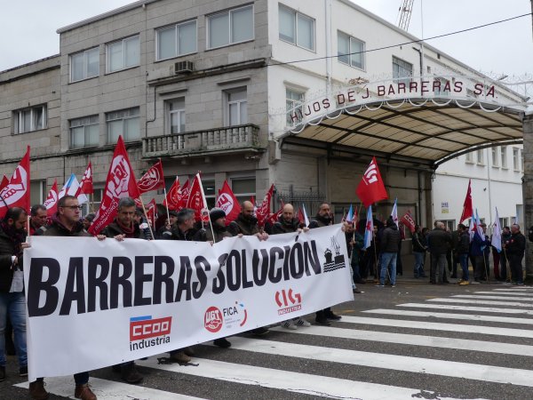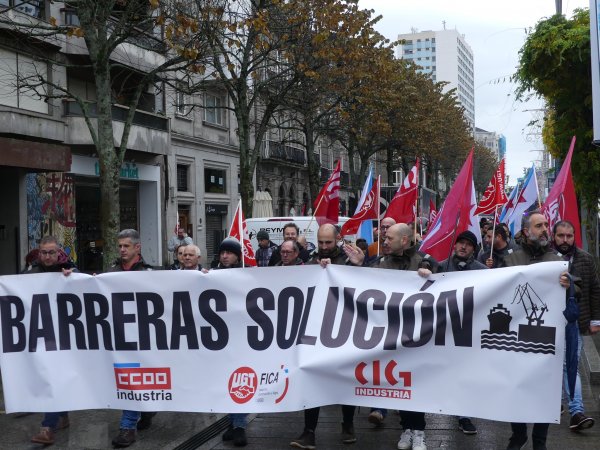 O cadro de persoal de Barreras mobilizouse hoxe de novo polas rúas de Vigo para reclamar a implicación da Xunta de Galiza na grave crise que atravesa o estaleiro. Traballadores/as e delegados/as sindicais da CIG, CCOO e UGT marcharon en manifestación dende as instalacións da empresa en Beiramar até a delegación da Xunta coincidindo con outra xornada de paro de catro horas convocada polo comité.