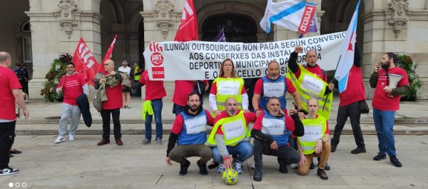 Estes traballadores e traballadoras, que prestan o servizo de conserxería en 18 polideportivos e campos de fútbol municipais, acordaron iniciar mobilizacións para reclamarlle á empresa concesionaria, Ilunion Outsourcing, que cumpra co convenio colectivo e pague o complemento de polivalencia.