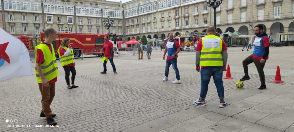 O persoal de conserxería das instalacións deportivas municipais da Coruña mobilizouse esta mañá na Praza de María Pita, coincidindo coa celebración do pleno municipal. Para chamar máis a atención sobre as súas reivindicacións disputaron un torneo de fútbol no que aceptaron a "calquera clase de xogadores e xogadoras solidarias".