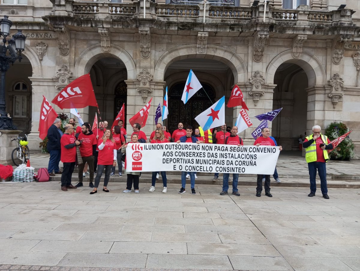 A este respecto, o presidente do comité, Xulio Ramilo, explicou que o persoal de conserxería dos polideportivos e campos de fútbol municipais está regulado por un convenio propio que contempla o pago dun plus de 300 euros. Pero dende agosto, Ilunion Outsourcing (Grupo Social Once) négase a pagar este complemento "porque di que o Concello da Coruña non lle abona a contía".