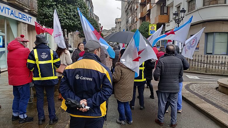 O persoal de Correos en Lalín percorre a vila en manifestación no segundo aniversario do inicio da súa loita por unhas condicións dignas