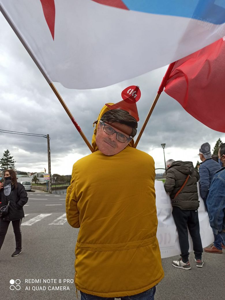 Por iso, os traballadores e traballadoras portaban distintas 'caras' do administrador en clara alusión "á súa falta de sensibilidade á hora de encarar un proceso traumático como este".