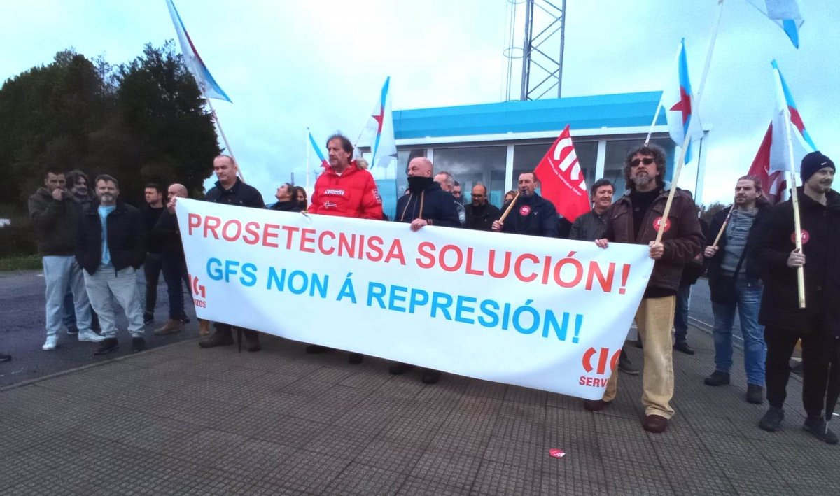 Aínda estando en minoría, a CIG, a través da súa representación na empresa, actuou dende o primeiro momento ante a situación de atraso no pago dos salarios por parte de Prosetecnisa, que comezaron xa no mes de xullo, presentando denuncia na Inspección de Traballo e dando a coñecer publicamente o conflito laboral. Conflito que se agravou coa entrada no servizo de GFS Security Group, a causa da política de represión contra o persoal en loita.