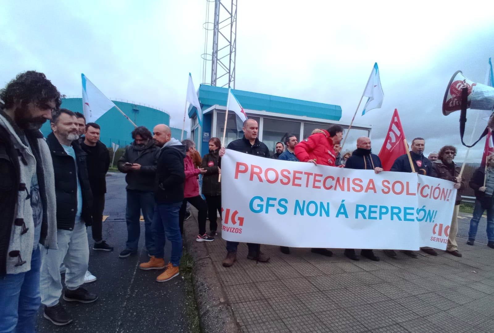 O pasado venres día 20 tivo lugar unha nova concentración dos traballadores de GFS Security no acceso a Reganosa e Forestal del Atlántico en Mugardos (do Grupo Tojeiro), para reclamar os seus dereitos laborais que veñen sendo vulnerados dende o pasado mes de outubro, cando iniciaba a prestación de servizos de seguridade na comarca en substitución da anterior empresa Prosetecnisa. Esta última empresa saía do servizo deixando unha débeda de preto de 250.000 euros a todos os traballadores e traballadoras na provincia da Coruña, ao non abonar os salarios do mes de setembro xunto ás respectivas liquidacións.
