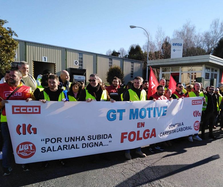 Os traballadores e as traballadoras de GT Motive iniciaron este venres un calendario de paros e mobilizacións para reclamar salarios dignos que permitan, cando menos, garantir o mantemento do poder adquisitivo. O paro, que se desenvolveu das 10 ás 15 horas, tivo un seguimento maioritario e foi acompañado dunha concentración diante das instalacións da empresa en Campolongo (Pontedeume). De non producírense avances na negociación, os paros e as protestas repetiranse os días 16 e 17 de febreiro.