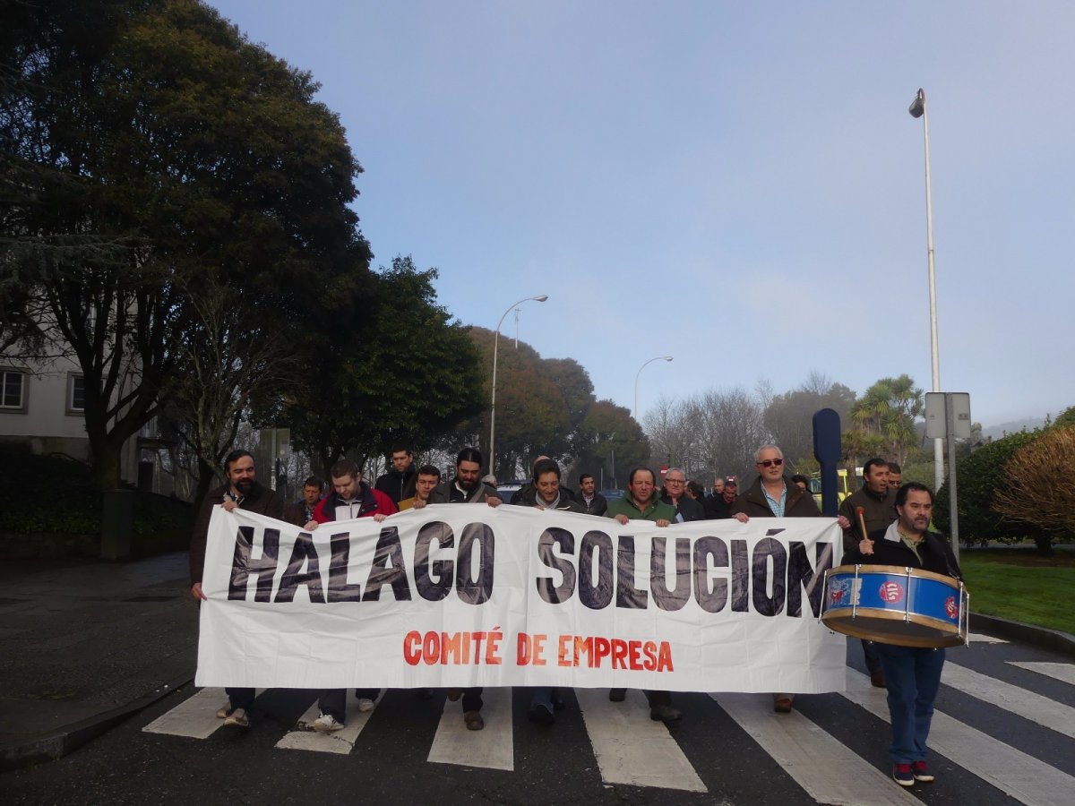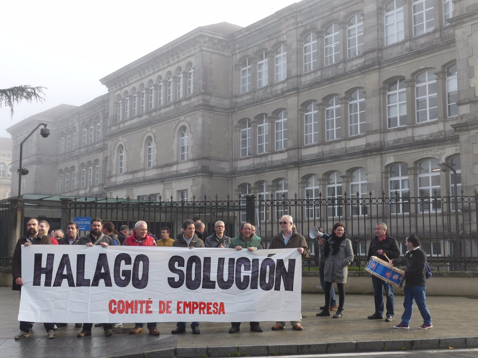 Persoal de Halago Alimentaria concentrouse diante do edificio administrativo da Xunta en San Caetano para demandar da consellaría de Economía, Emprego e Industria que, “en aplicación das súas capacidades legais”, clarifique a situación económica da empresa, polas perdas que podería ocasionar ás diferentes administracións. Tamén solicitaron, cun escrito presentado no rexistro, unha xuntanza coa Secretaría de Xeral de Emprego para abordar a súa situación.