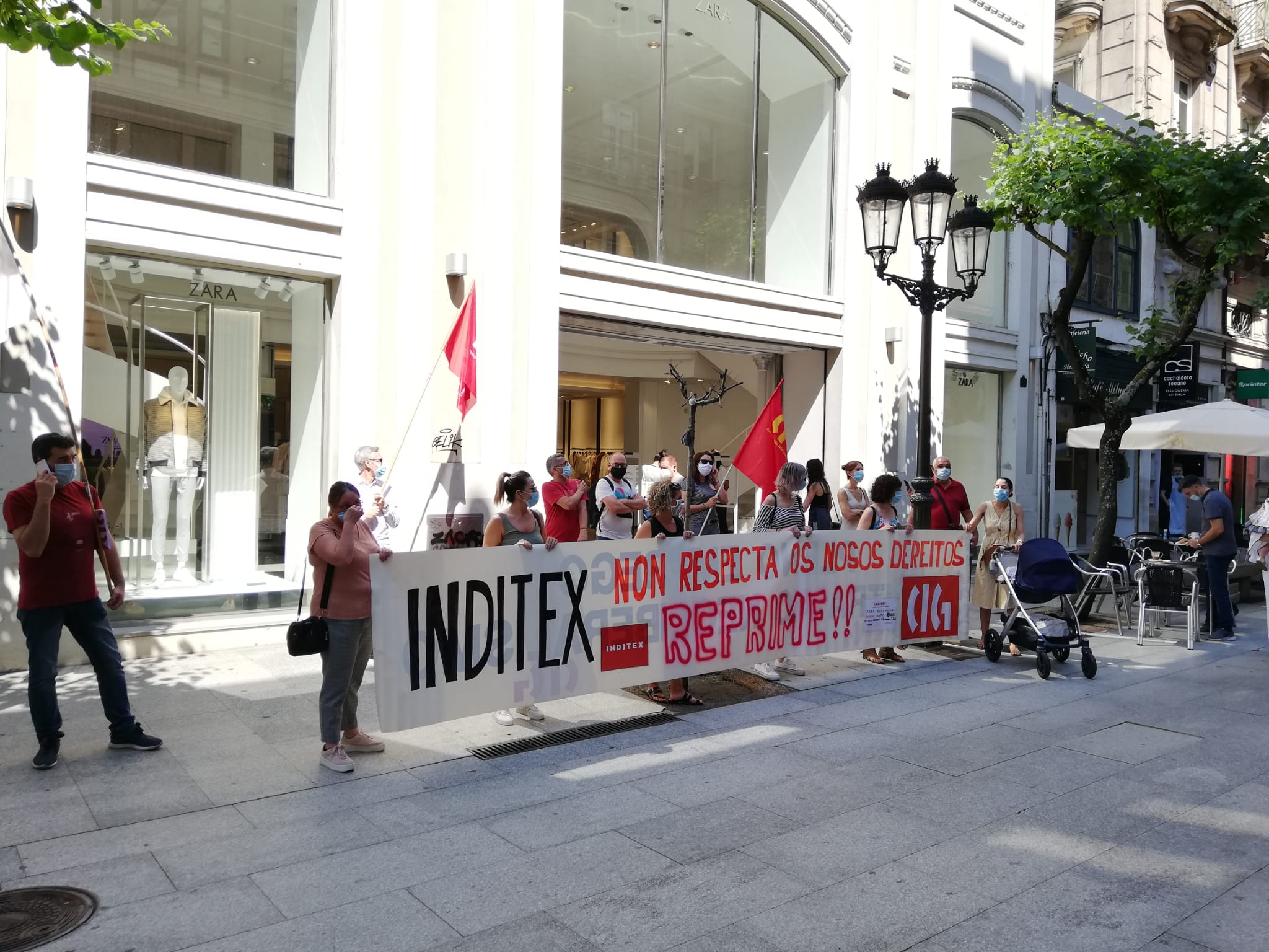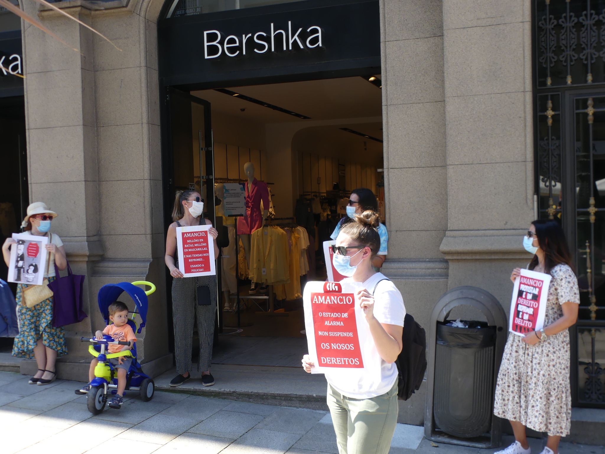 As mobilizacións tiveron lugar de 12:00 a 12:30 horas diante de tendas de Zara, Bershka e Stradivarius, onde as empregadas/es despregaron faixas denunciando a vulneración dos seus dereitos laborais e berraron consignas contra a decisión da empresa de modificar a súa xornada de traballo.