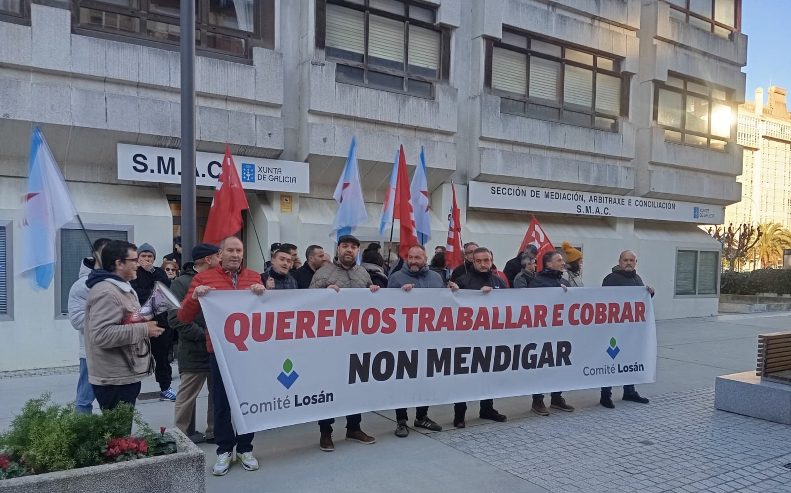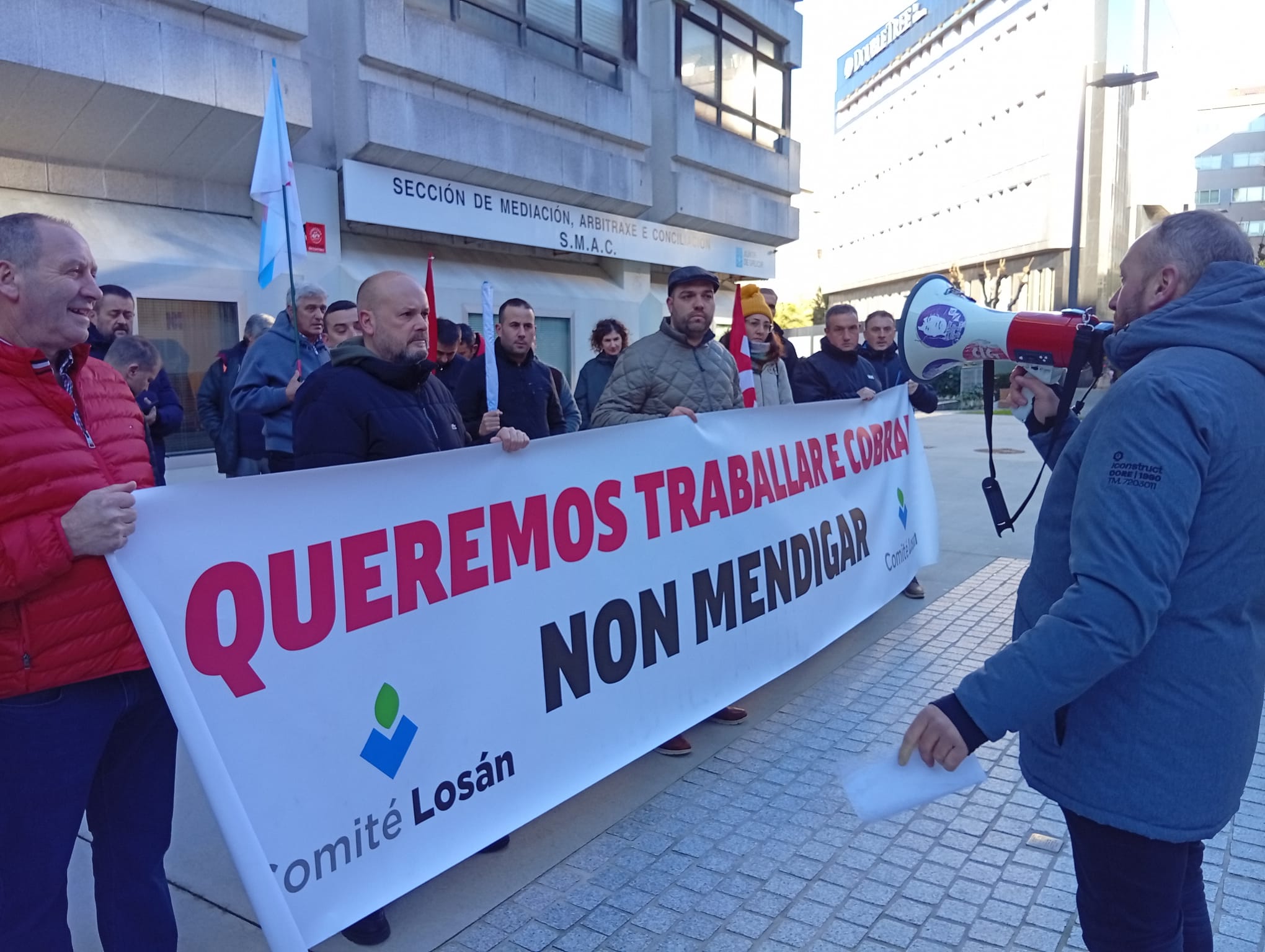 O persoal de Industrias Losán, con centros de traballo en Curtis, Vilasantar e na Coruña, está a intensificar a loita para reclamar o cobro dos seus salarios e demandar garantías de futuro para a empresa ante a práctica confirmación de que a oferta de compra por parte dunha compañía valenciana era unha fraude. De xeito que hoxe mobilizouse diante do SMAC ás 10:15 horas e na sede administrativa da empresa na cidade herculina ao mediodía.