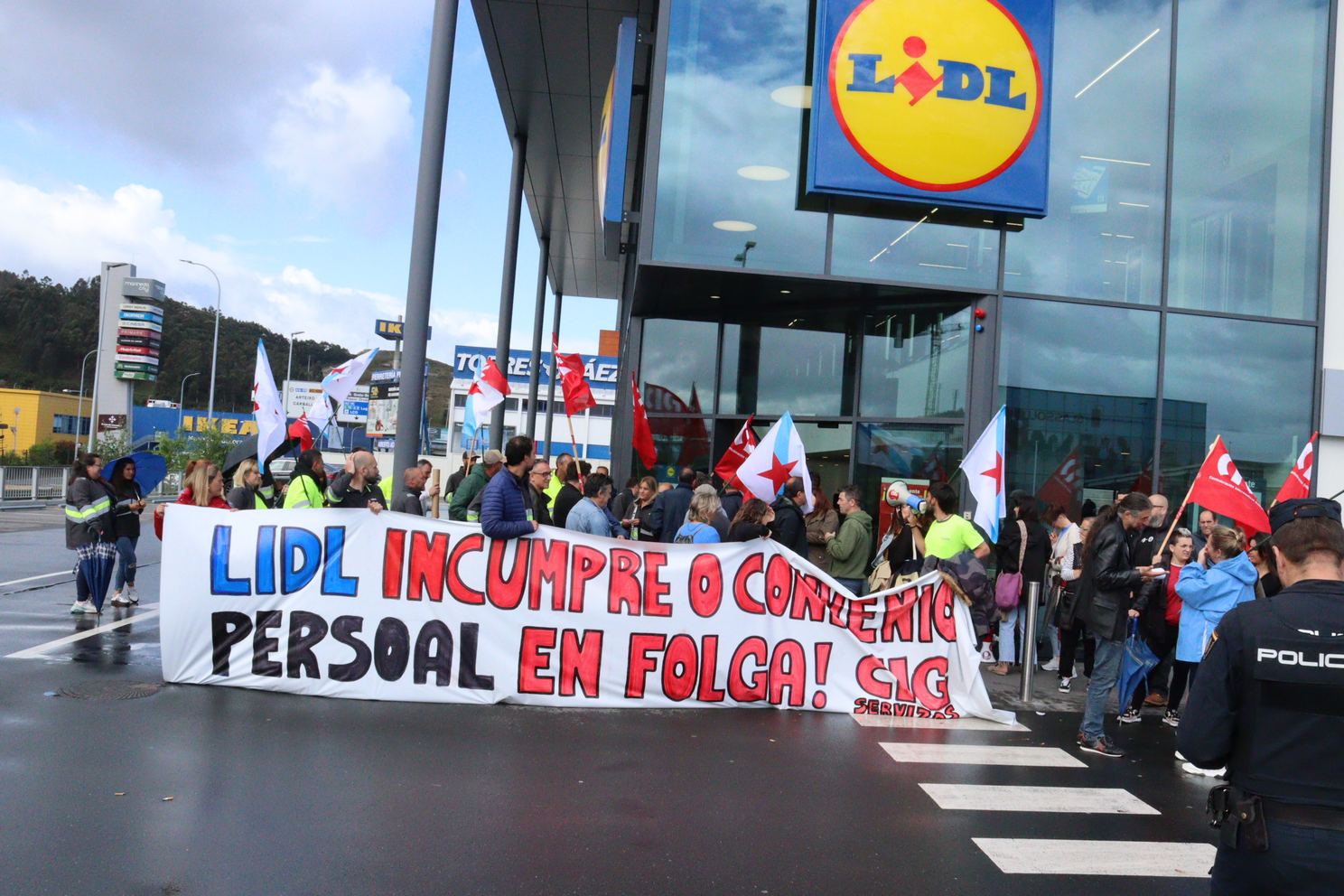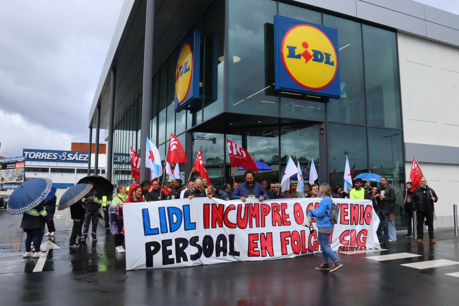 Ás portas do supermercado, o persoal denunciou unha vez máis a actitude intransixente da empresa e a estratexia de boicot á folga que está a seguir Lidl dende a primeira xornada de paro o 14 de febreiro, vao camiño xa dos tres meses. Cómpre lembrar que a finais de marzo tivo lugar nos xulgados de Ferrol o xuízo contra a empresa polas prácticas vulneradoras do dereito fundamental á folga, do que aínda se está á espera da sentenza.