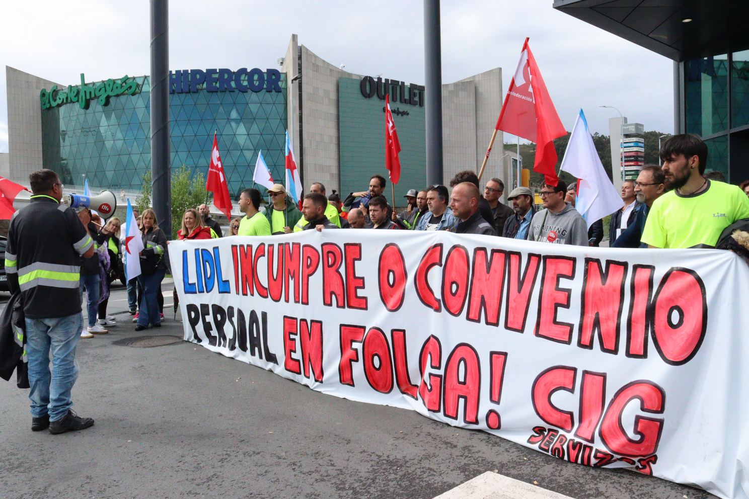 O persoal de Lidl Narón, que leva 80 días en folga, leva as súas reivindicacións até A Coruña