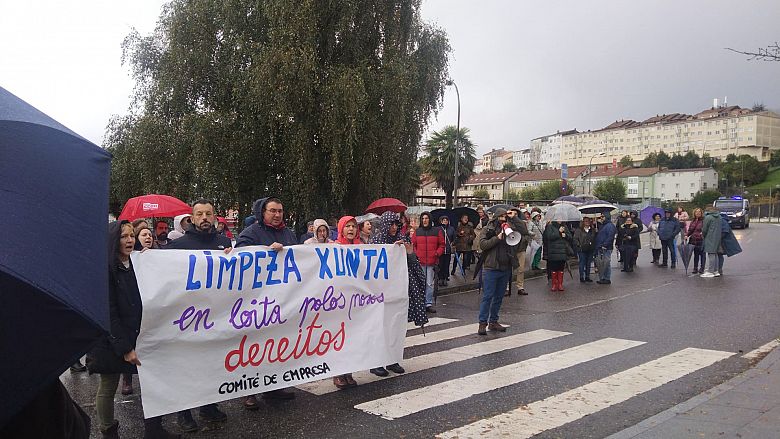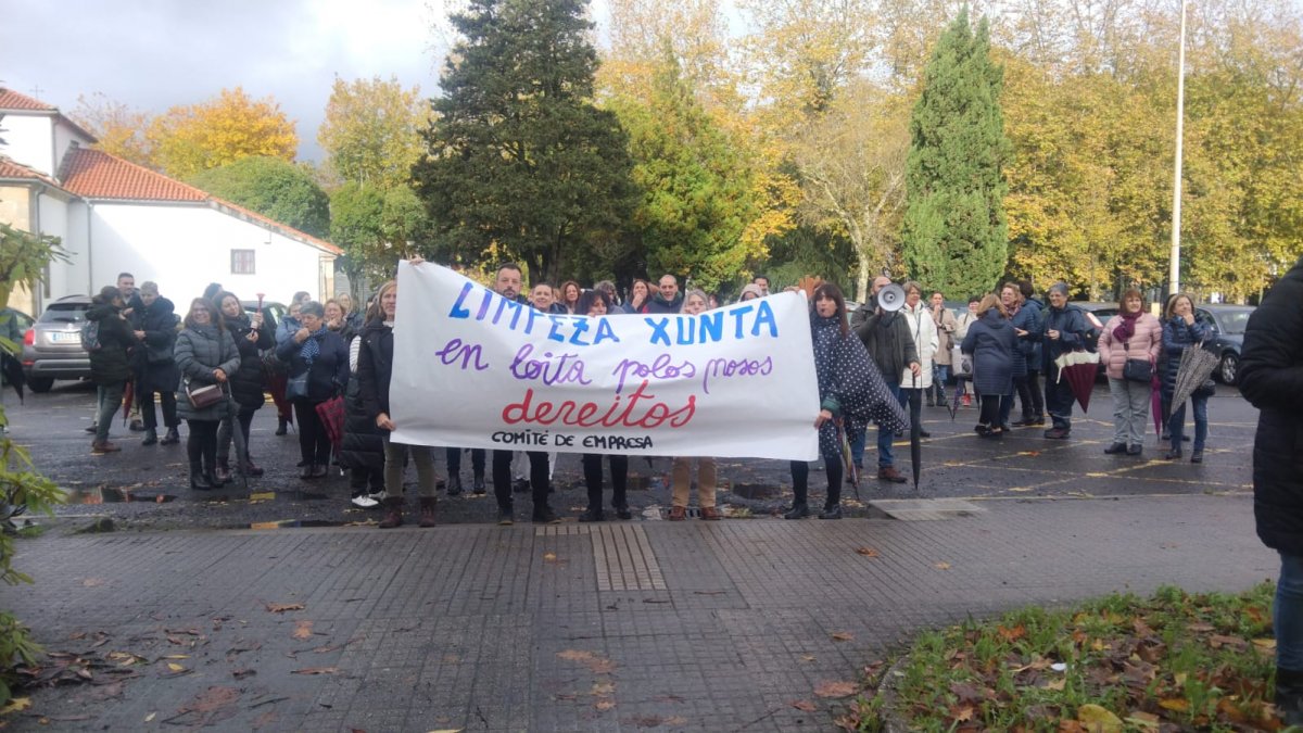 Transcorrido case un ano da concesión do servizo de limpeza da Xunta de Galiza a Samaín, vinculada a Clece, a empresa segue sen dar cumprimento ao acordado en materia de carreira profesional, establecida para o persoal laboral e funcionario da Xunta de Galiza, e cuxa aplicación foi recoñecida para o persoal de limpeza en virtude dos acordos de equiparación salarial e social existentes desde o ano 2000. Unha demanda que se vén facendo á empresa de forma reiterada e pola que hoxe se mobilizou o persoal diante do edificio administrativo da Xunta en San Caetano.