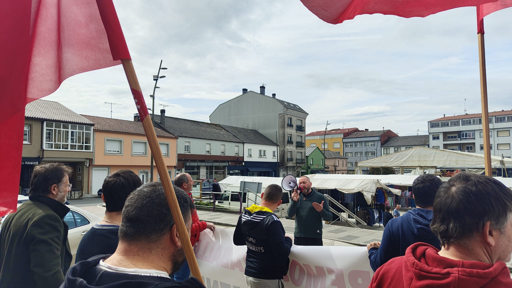 A concentración convocouse, ademais, aproveitando que hoxe era día de feira en Teixeiro para informar a veciñanza das situación das factorías e demandarlle a súa solidariedade.