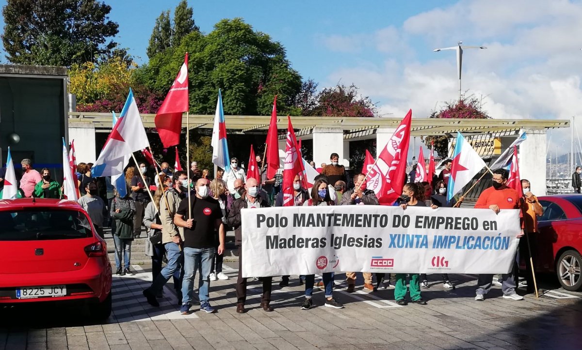 O cadro de persoal de Maderas Iglesias, compañía porriñesa dedicada á fabricación de tarima flotante que corre grave risco de desaparecer, continuou hoxe co intenso calendario de mobilizacións co que pretenden forzar a implicación real da Xunta na busca dunha solución á crise que atravesa a empresa co obxectivo de salvar os 148 empregos actuais. As traballadoras/es percorreron a pé as rúas de Vigo nunha nova marcha que rematou diante da delegación autonómica.