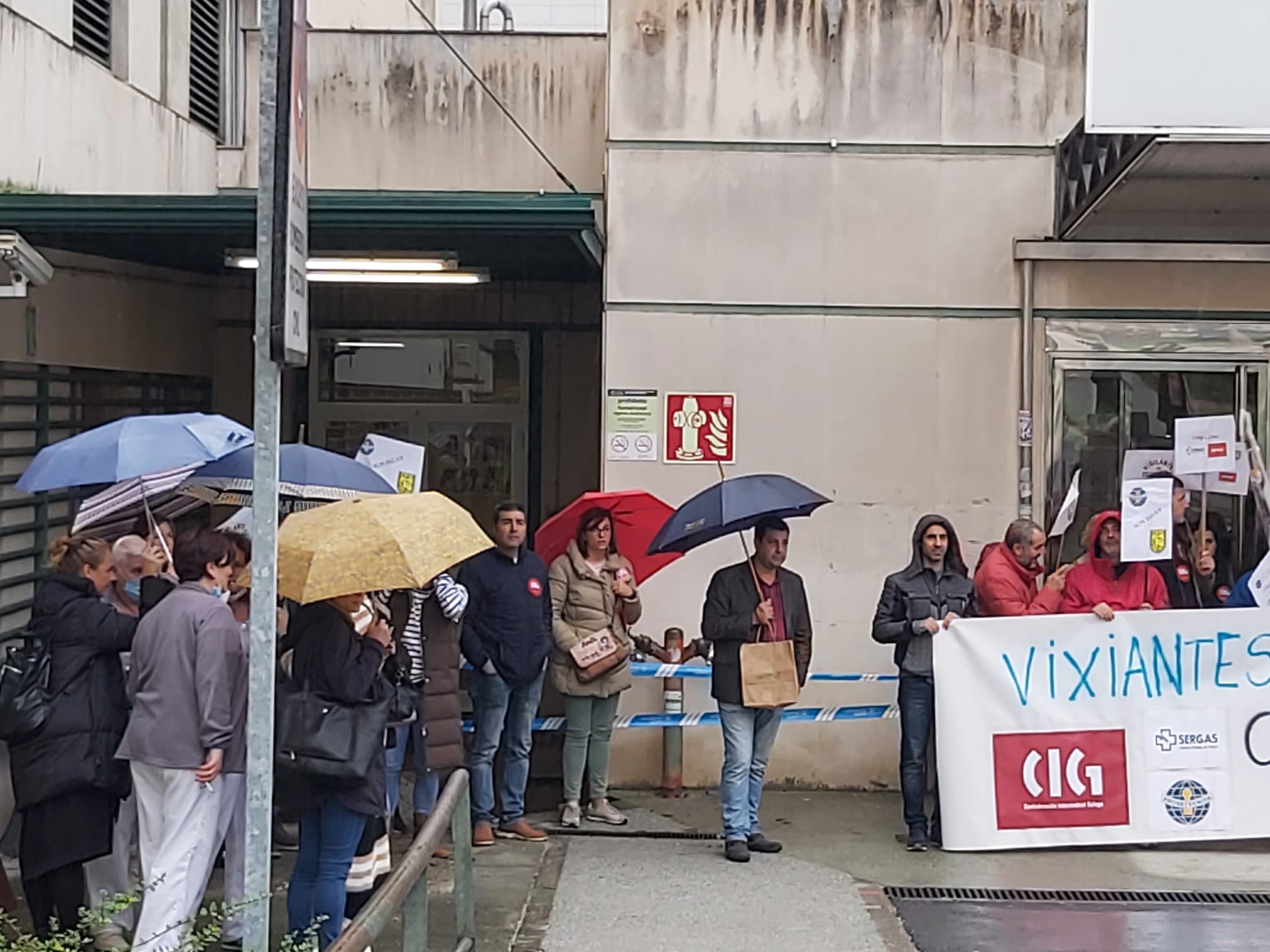 Persoal de seguridade do Complexo Hospitalario Universitario de Ourense (CHUO) desenvolveu hoxe unha concentración ás portas do centro médico para reclamarlle á anterior empresa encargado do servizo, Prosetecnisa, o pago do salario de setembro e o finiquito, que aínda non lles foron abonados.