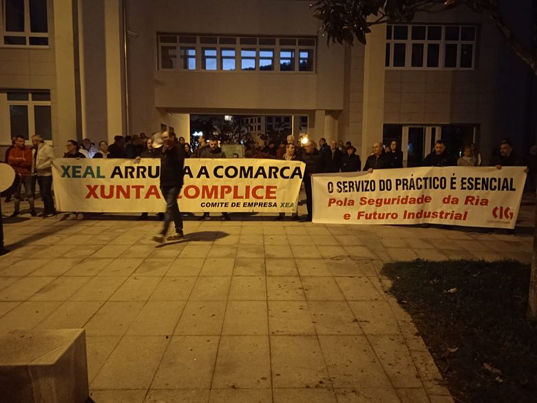 O persoal de XEAL continuou este xoves co calendario de mobilizacións para exixir un Plan Industrial e de Viabilidade das fábricas, a recuperación do emprego destruído e a aplicación do convenio colectivo propio, que a empresa manobrou para facer decaer. Desta volta a protesta realizouse diante da Casa do Concello de Cee, e na mesma tamén se reclamou a reposición do servizo de práctico na ría de Corcubión e que se deixe sen efecto o traslado da grúa do porto de Brens.