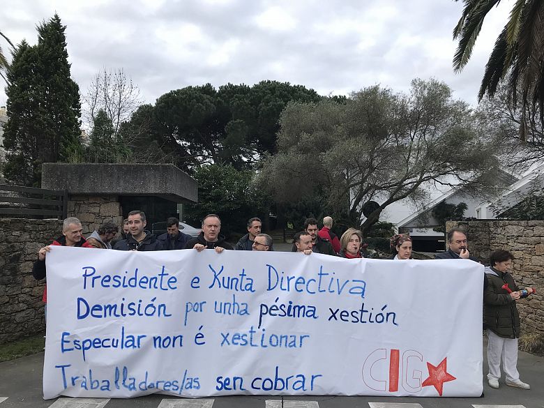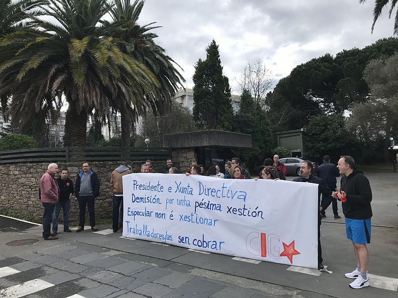 "O Club está en pleno proceso de concurso de acredores, pero nós seguimos sen percibir os nosos soldos. Débennos dous meses e imos camiño de tres, porque non parece que o salario de febreiro vaia chegar tampouco", advertía Manuel Sóñora, delegado de persoal da CIG, durante a protesta. A este respecto, critica que non chegan os cartos para pagar as nóminas dos/as traballadores/as, "mais temos que seguir dando servizo nunha situación precaria e insostíbel, xa que non é posíbel facer as compras necesarias para manter a calidade dos servizos".