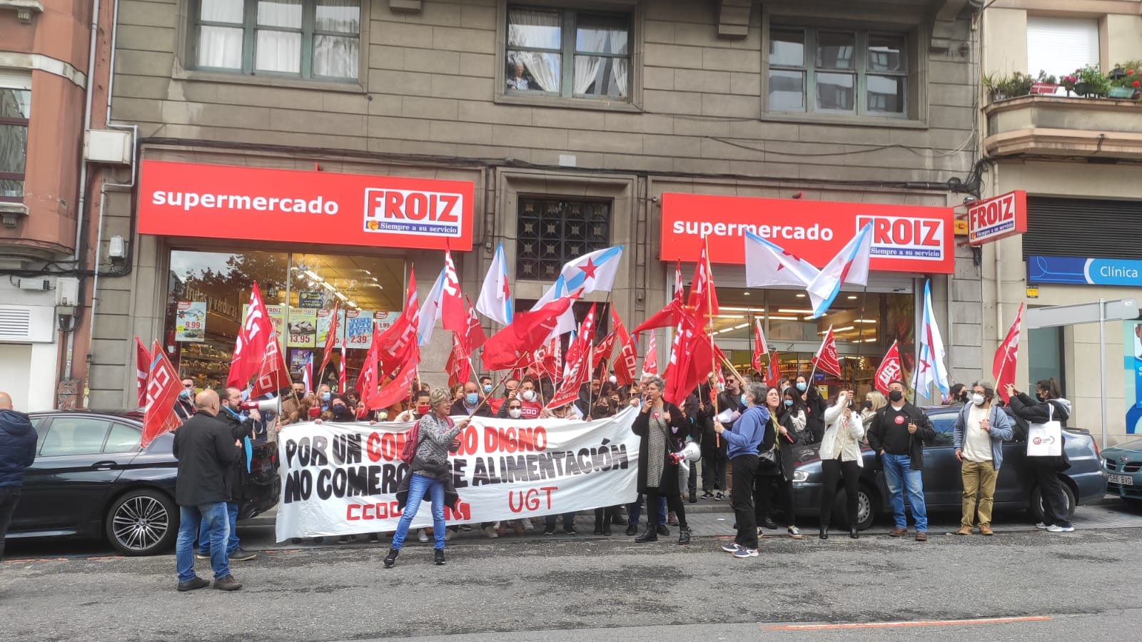 Traballadoras e traballadores do comercio de alimentación iniciaron mobilizacións este venres en rexeitamento ás pretensións da patronal de manter a precariedade e os baixos salarios no novo convenio colectivo, a pesar dos millonarios beneficios que o sector está a obter dende o inicio da pandemia. As primeiras concentracións, convocadas por CIG, CCOO e UGT, realizáronse diante dun supermercado Gadis e dun supermercado Froiz da cidade da Coruña, xa que estas son as dúas grandes empresas reguladas por este convenio.