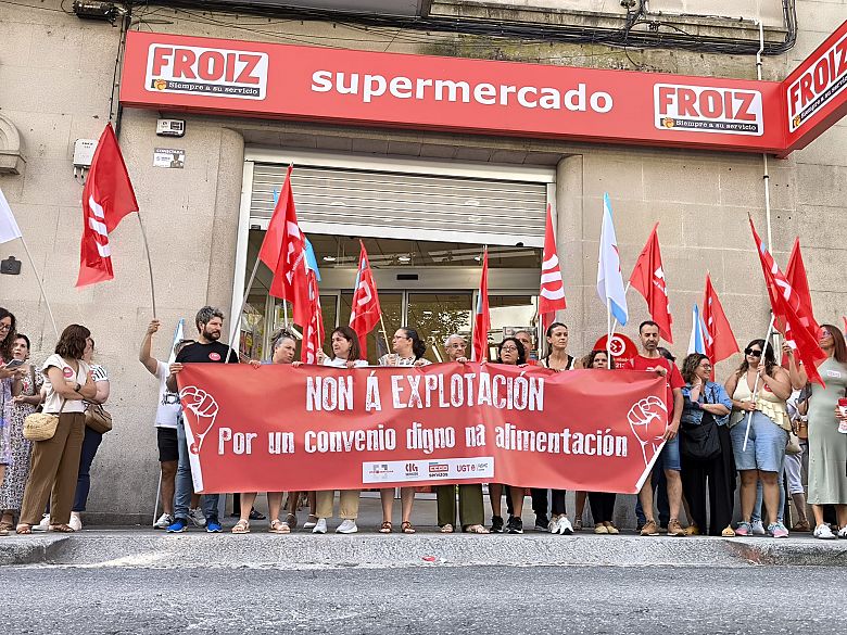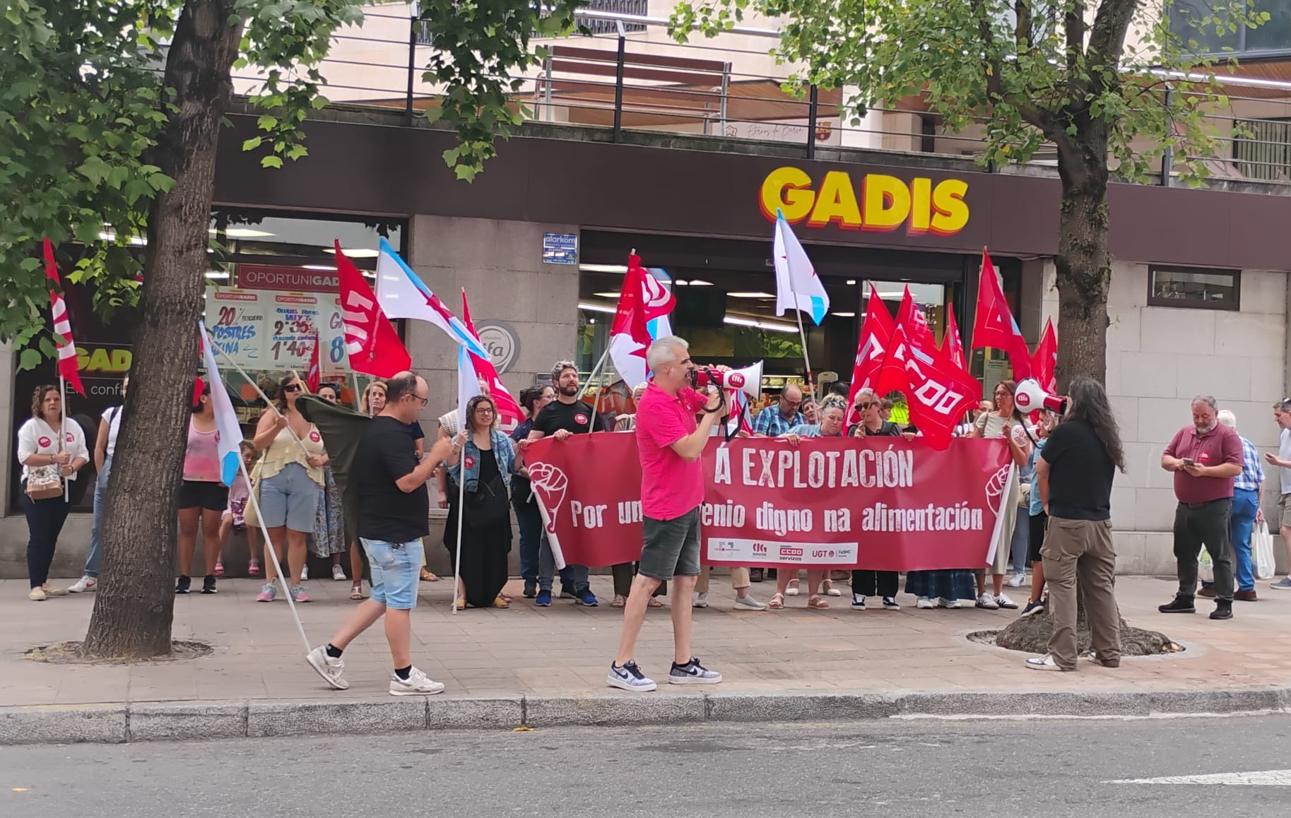 Traballadoras e traballadores do comercio de alimentación da provincia de Ourense continuaron este venres coas mobilizacións en demanda dun convenio colectivo digno. As concentracións realizáronse diante de tendas Gadis e Froiz, xa que xunto co Grupo Cuevas constitúen a patronal maioritaria do sector. As protestas desenvólvense tras a mediación deste xoves e ante a convocatoria de novas xornadas de folga para o 24 e 26 de xullo.