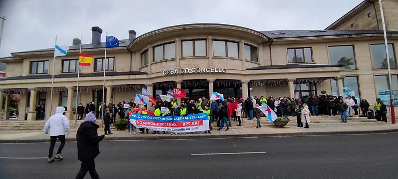 O persoal do Concello de Cariño maniféstase para exixir condicións de traballo dignas