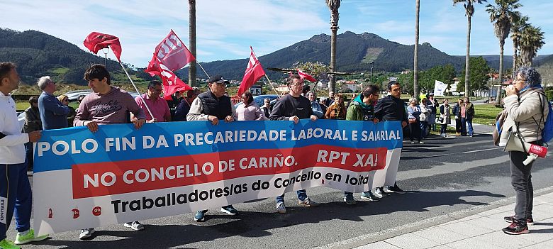 O persoal do Concello de Cariño prosegue coa súa loita contra a precariedade laboral e salarial e para reclamar a negociación e aprobación da Relación de Postos de Traballo que veñen demandado dende hai 18 anos. Este mércores as traballadoras e traballadores secundaron de xeito maioritario unha nova xornada de folga (nesta ocasión parcial) e saíron en manifestación polas rúas da vila ao berro de “RPT xa”.