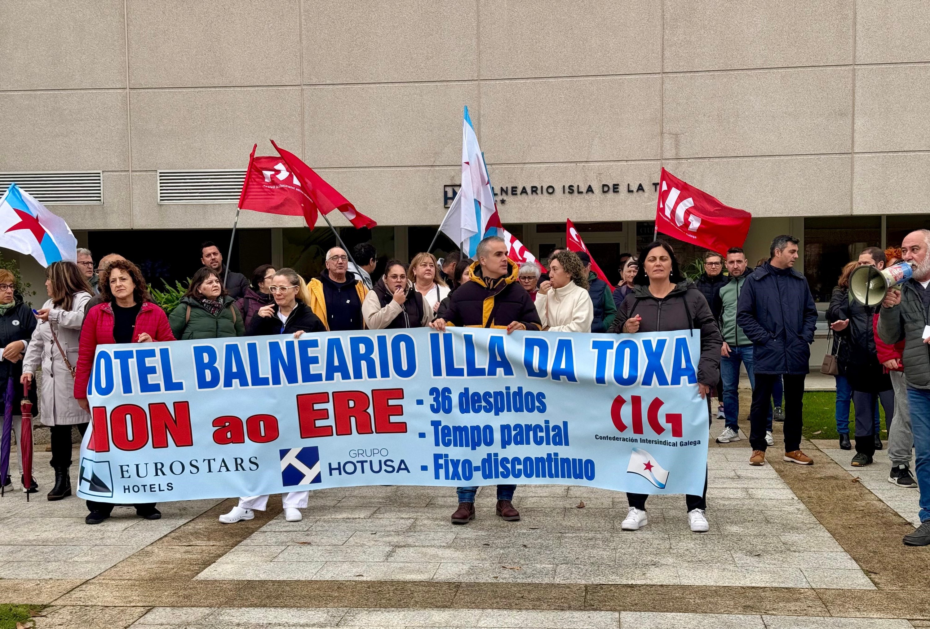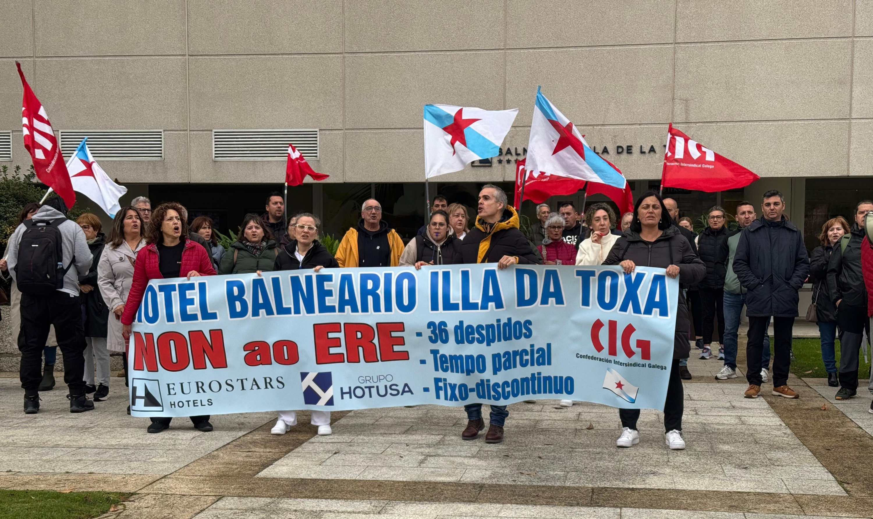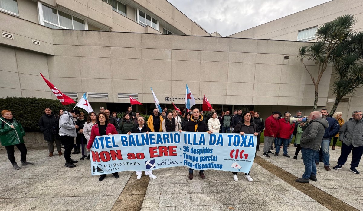 Persoas traballadoras e clientes do Hotel Balneario Eurostars Illa da Toxa mobilizáronse hoxe diante do establecemento para amosar o seu rexeitamento ao ERE extintivo e a chantaxe da empresa, que pretende precarizar aínda máis as condicións laborais a cambio de reducir os despidos. As protestas continuarán este sábado 23 e o martes 26.