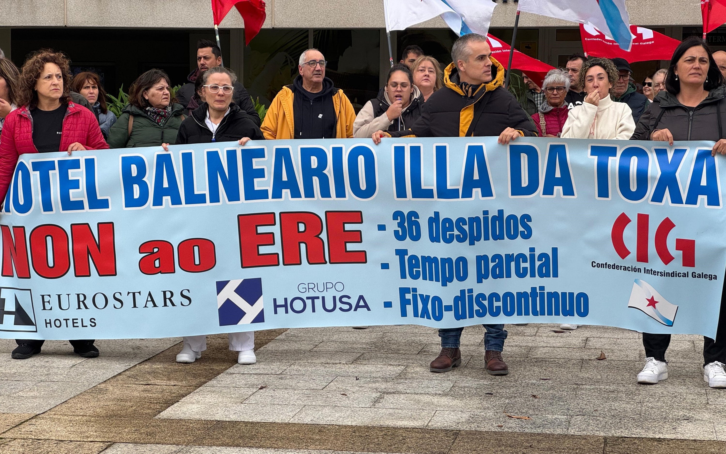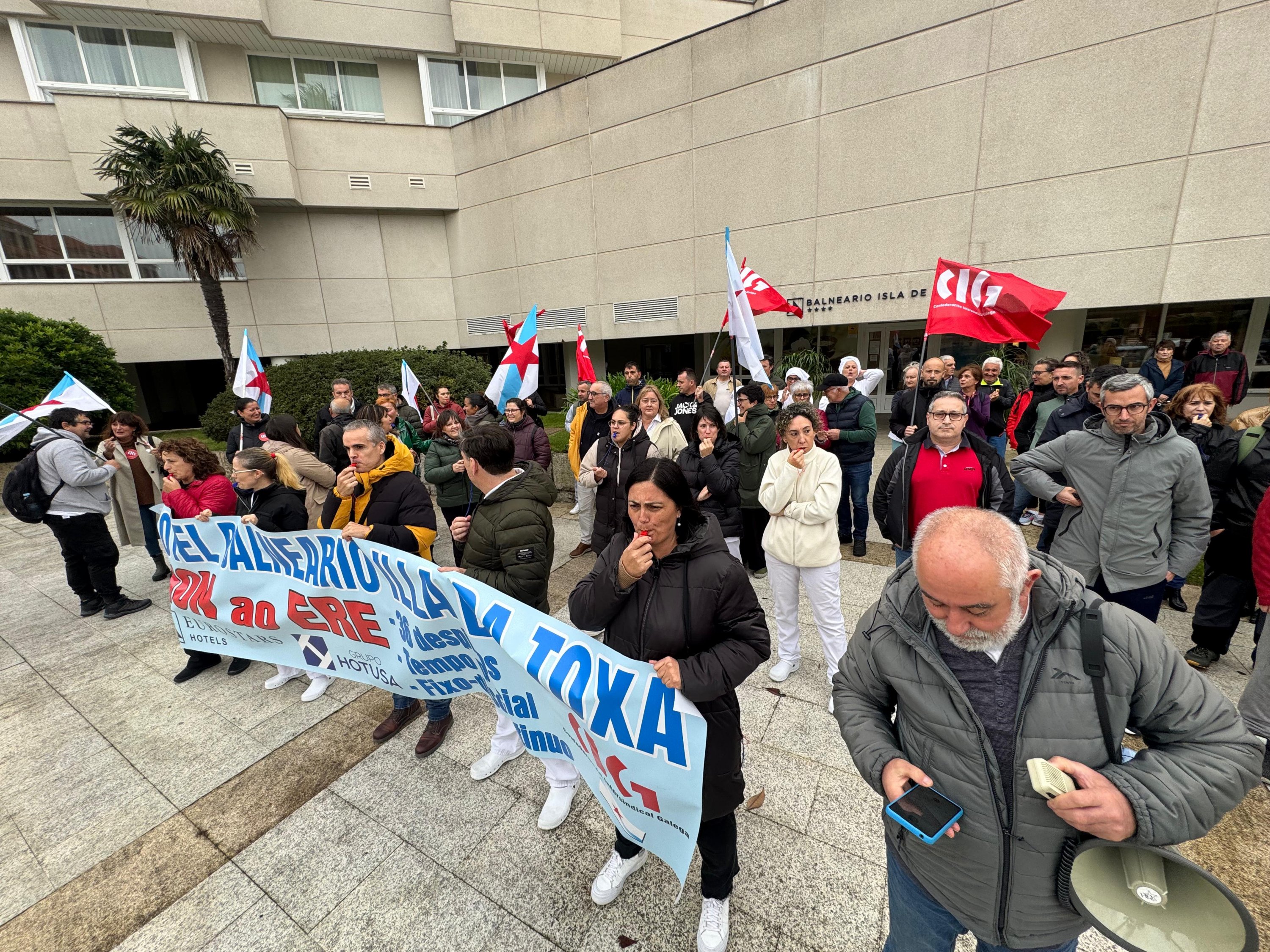 O persoal do Hotel Balneario da Toxa protesta contra o ERE e as chantaxes da empresa