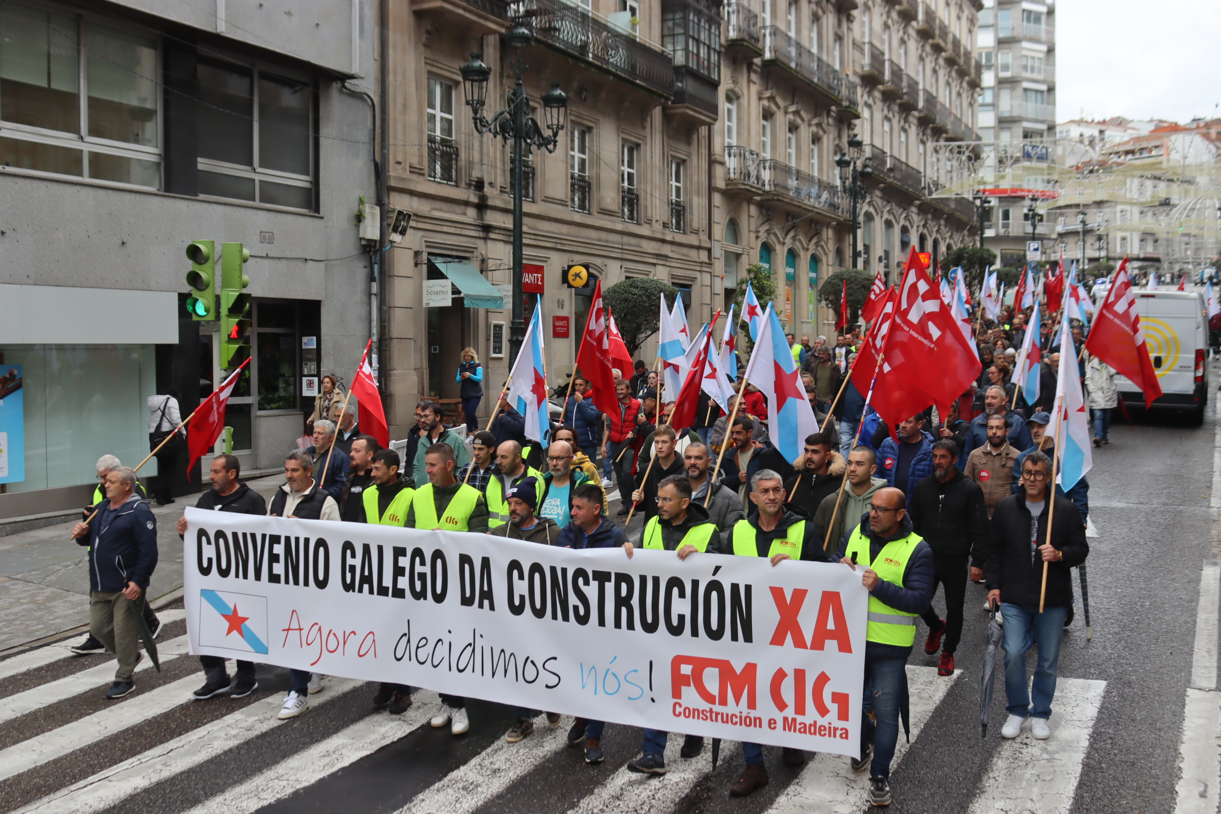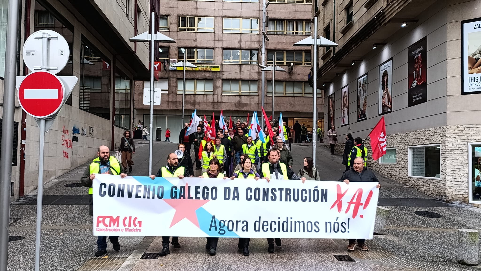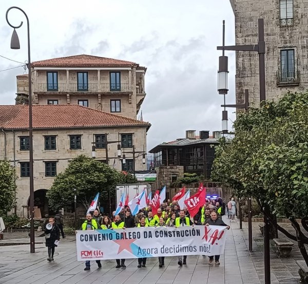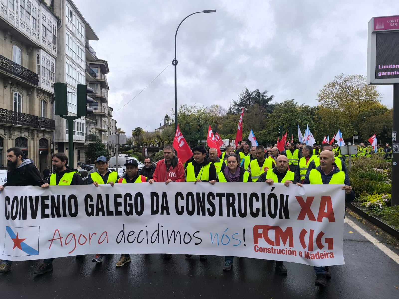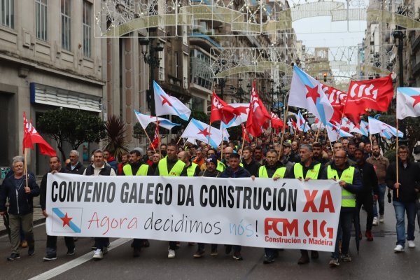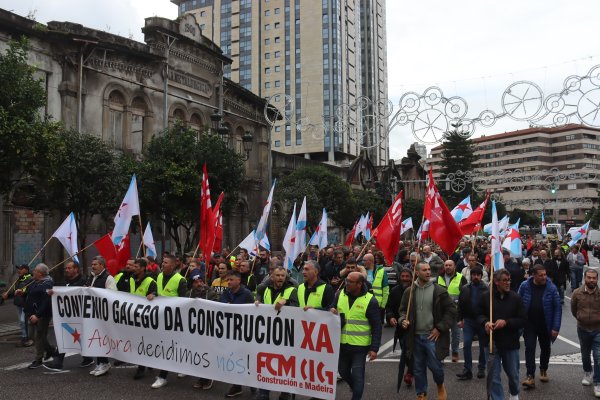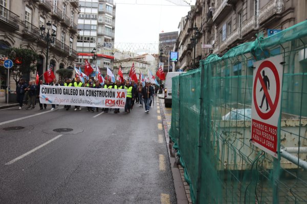 O persoal do sector galego da construción amosou hoxe o seu músculo e capacidade de loita ao paralizar todas as grandes obras (practicamente o 100% das públicas e un 70% das privadas) nunha xornada de folga histórica para reclamar un marco galego que blinde os convenios provinciais e permita avanzar nas condicións e materias que a día de hoxe están reservadas ao convenio estatal. O éxito do paro de 24 horas convocado pola CIG evidenciouse tamén nos numerosos piquetes informativos e nas concorridas manifestacións que tiveron lugar nas sete cidades ao mediodía, a pesar dos intentos de boicot da patronal, que onte mesmo adiantou a xuntanza prevista para hoxe e pactou con CCOO e UGT a suba salarial de 2025 e 2026 coa pretensión de desmobilizar o sector.