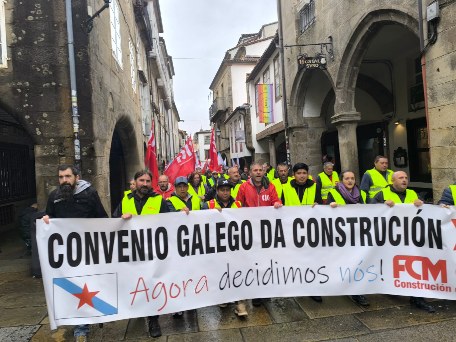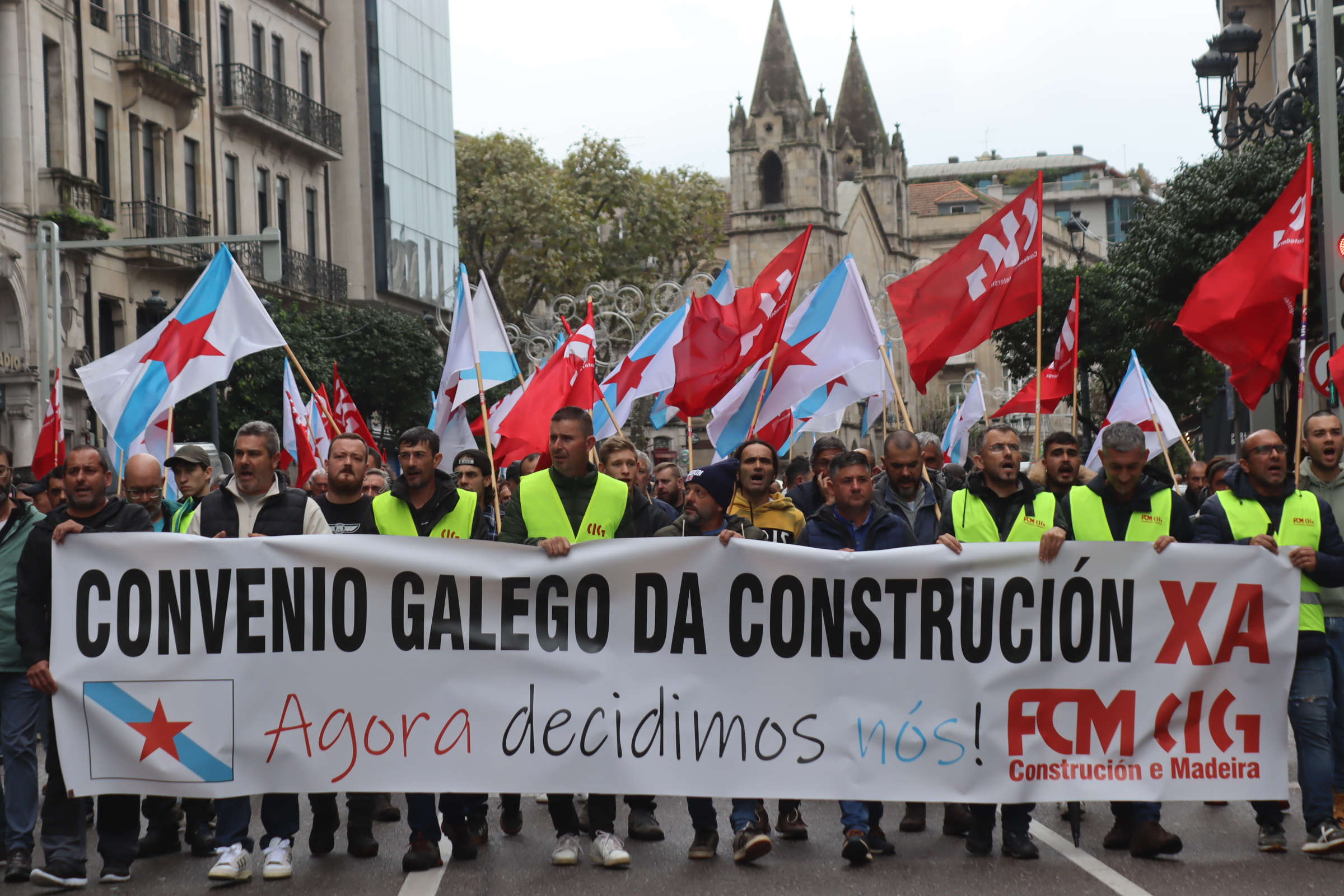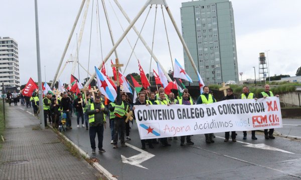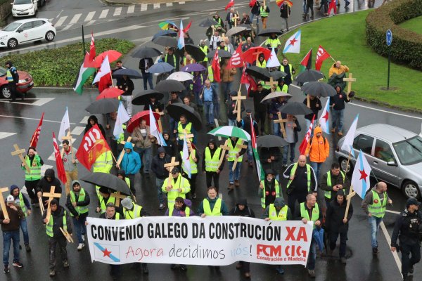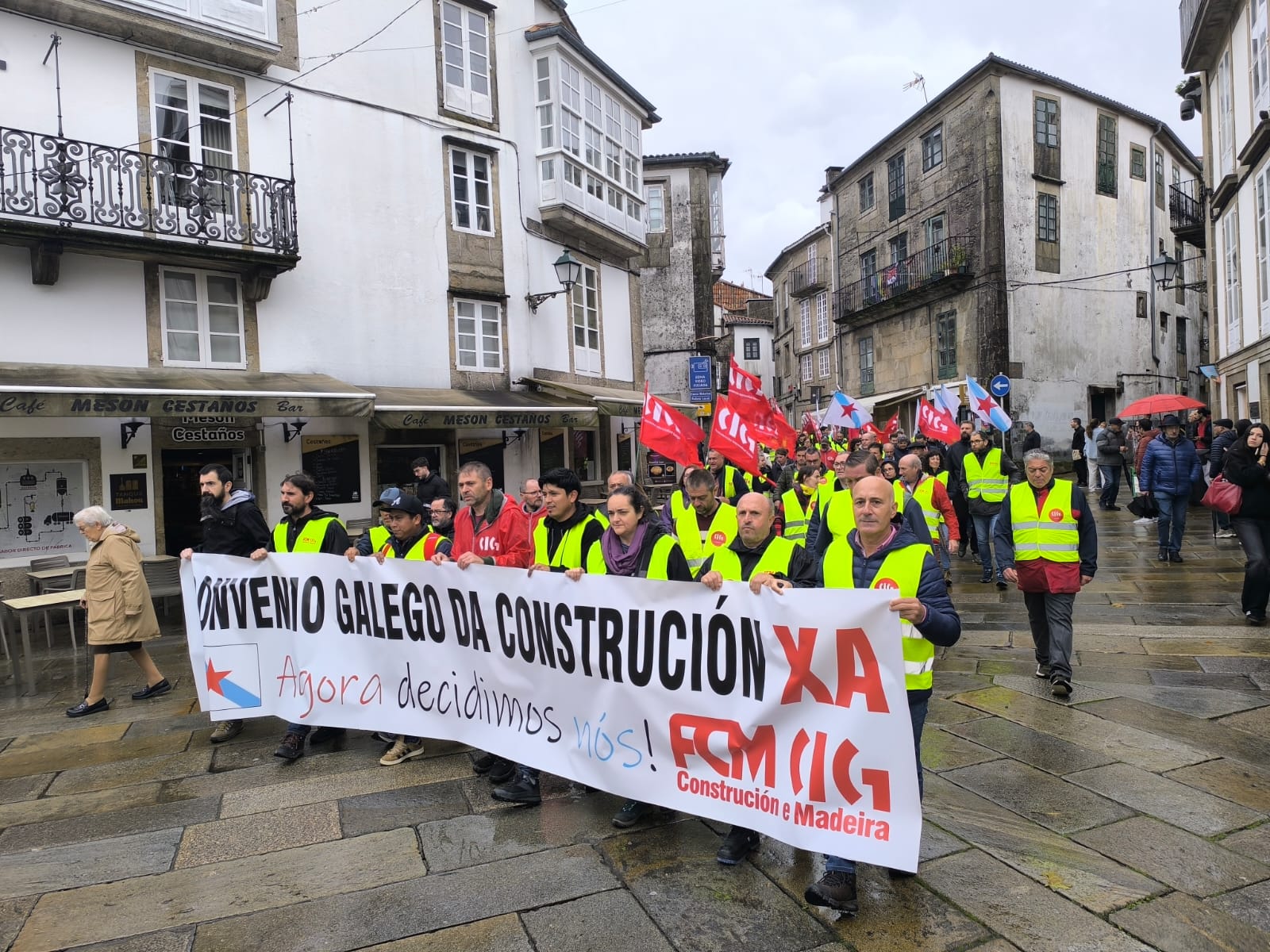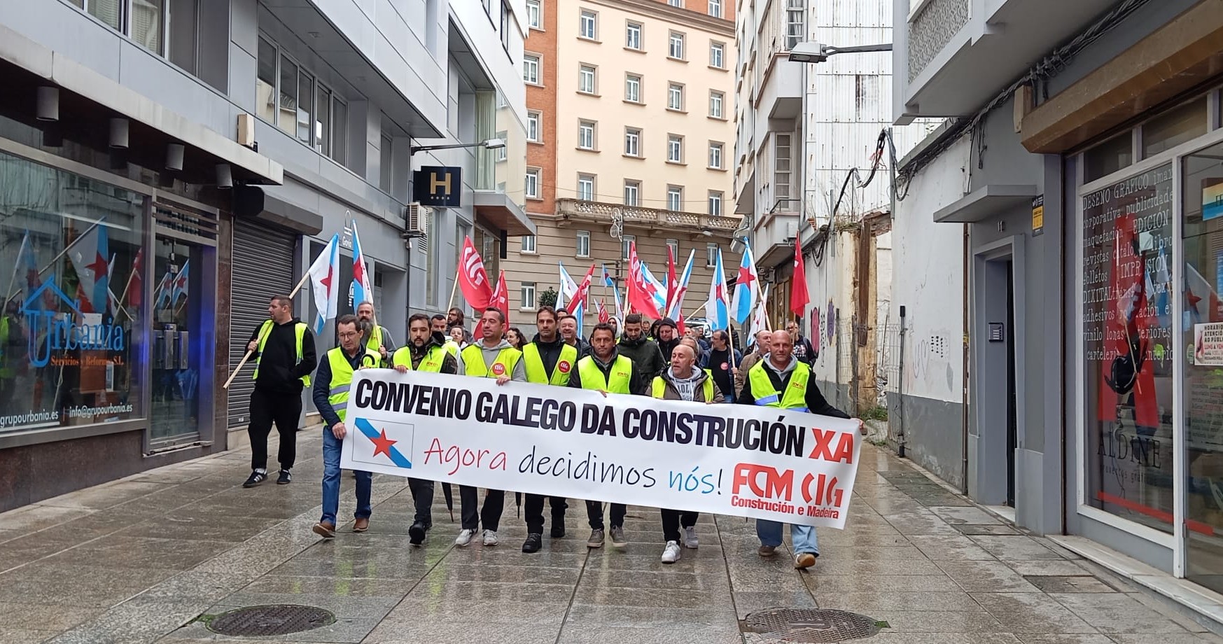 O persoal do sector galego da construción amosou hoxe o seu músculo e capacidade de loita ao paralizar todas as grandes obras (practicamente o 100% das públicas e un 70% das privadas) nunha xornada de folga histórica para reclamar un marco galego que blinde os convenios provinciais e permita avanzar nas condicións e materias que a día de hoxe están reservadas ao convenio estatal. O éxito do paro de 24 horas convocado pola CIG evidenciouse tamén nos numerosos piquetes informativos e nas concorridas manifestacións que tiveron lugar nas sete cidades ao mediodía, a pesar dos intentos de boicot da patronal, que onte mesmo adiantou a xuntanza prevista para hoxe e pactou con CCOO e UGT a suba salarial de 2025 e 2026 coa pretensión de desmobilizar o sector.