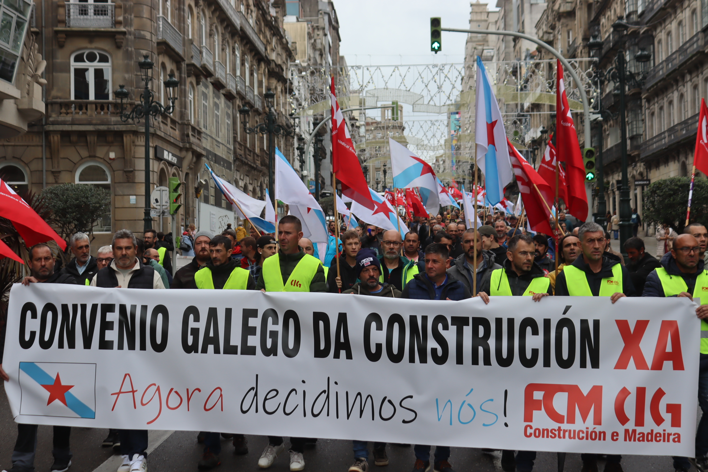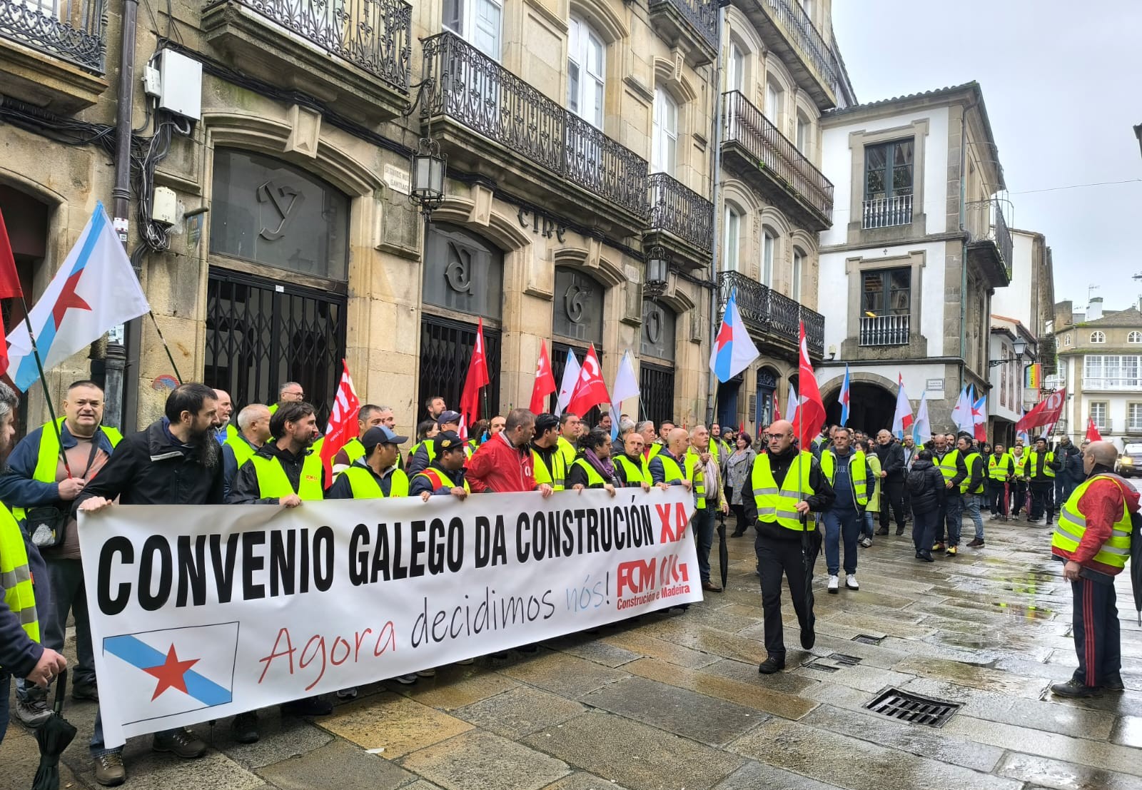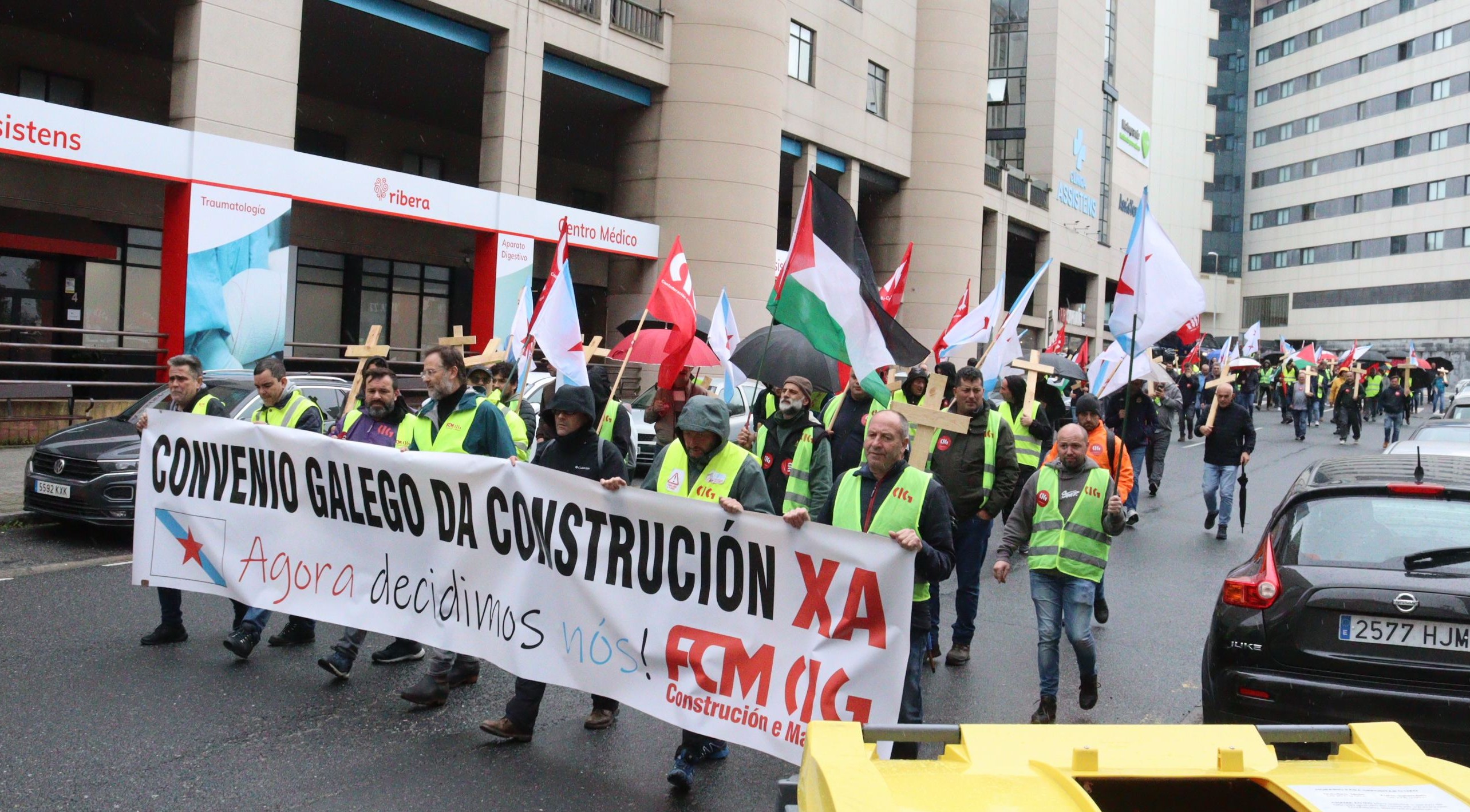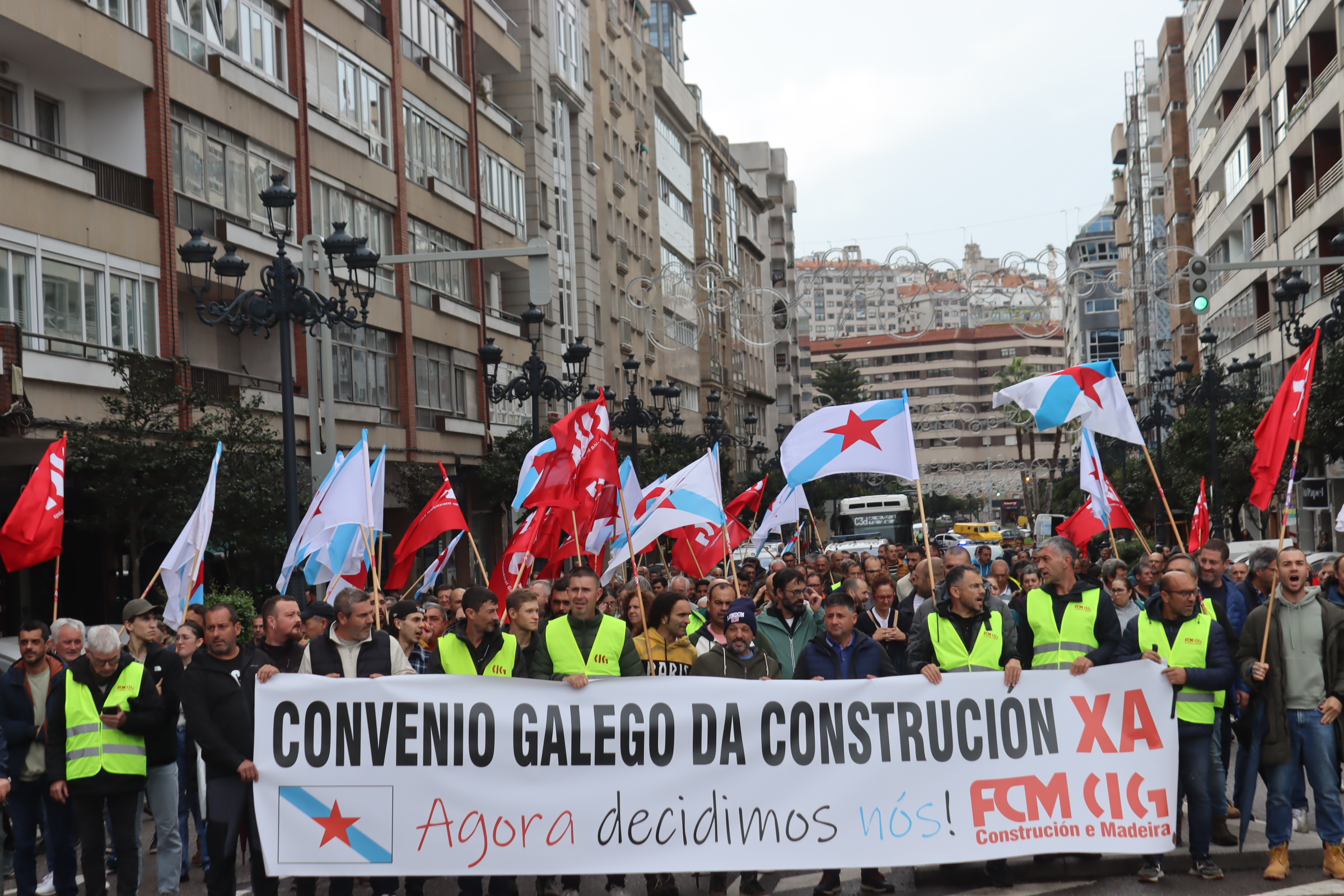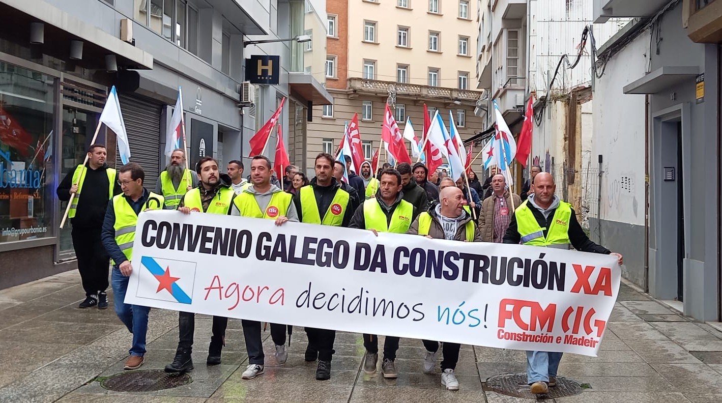 O persoal do sector galego da construción amosou hoxe o seu músculo e capacidade de loita ao paralizar todas as grandes obras (practicamente o 100% das públicas e un 70% das privadas) nunha xornada de folga histórica para reclamar un marco galego que blinde os convenios provinciais e permita avanzar nas condicións e materias que a día de hoxe están reservadas ao convenio estatal. O éxito do paro de 24 horas convocado pola CIG evidenciouse tamén nos numerosos piquetes informativos e nas concorridas manifestacións que tiveron lugar nas sete cidades ao mediodía, a pesar dos intentos de boicot da patronal, que onte mesmo adiantou a xuntanza prevista para hoxe e pactou con CCOO e UGT a suba salarial de 2025 e 2026 coa pretensión de desmobilizar o sector.