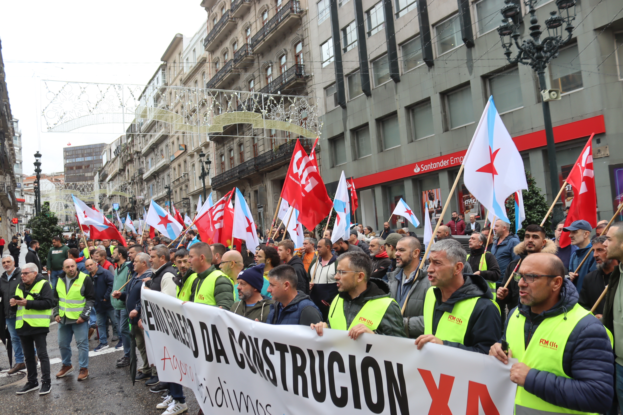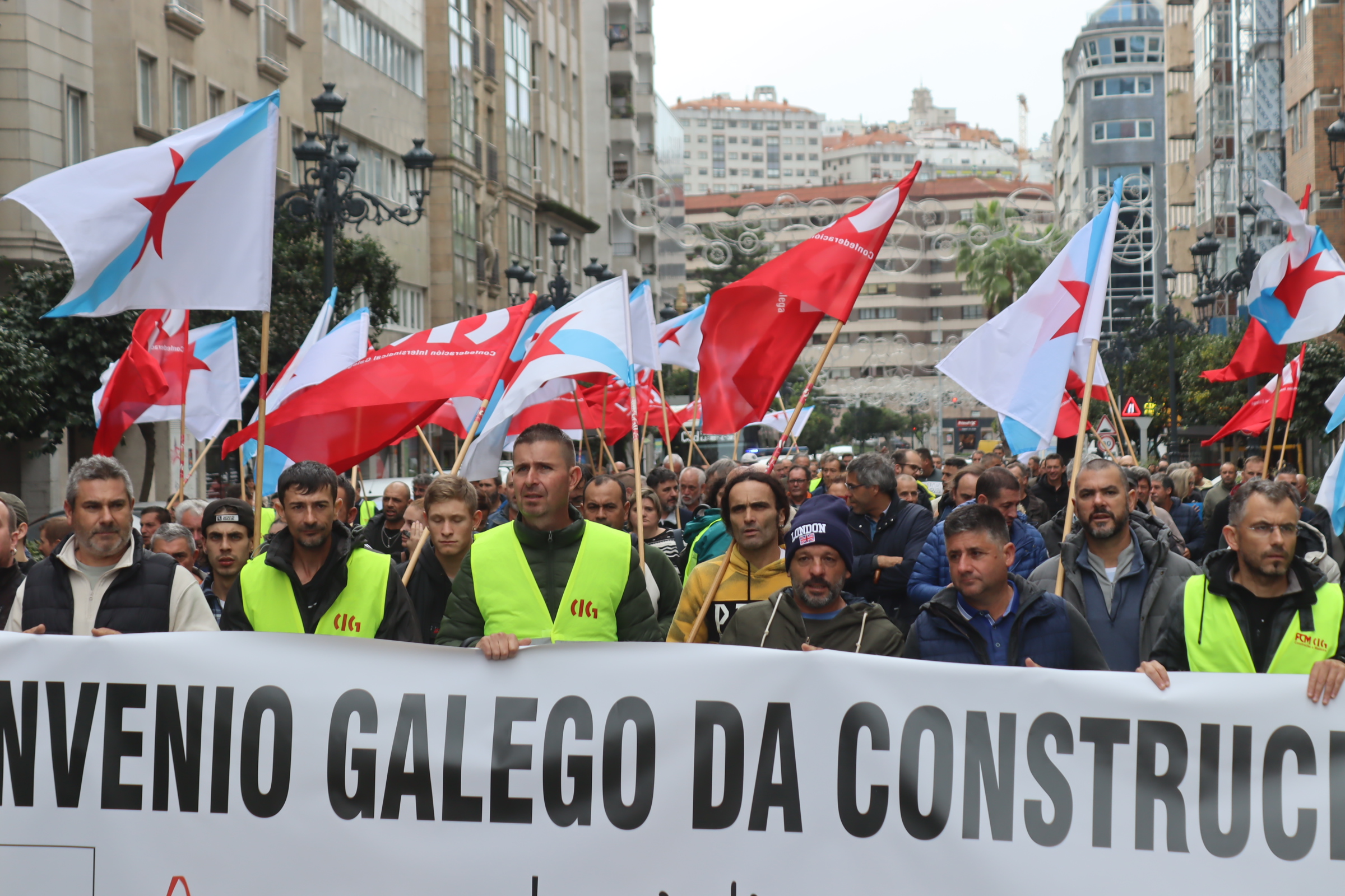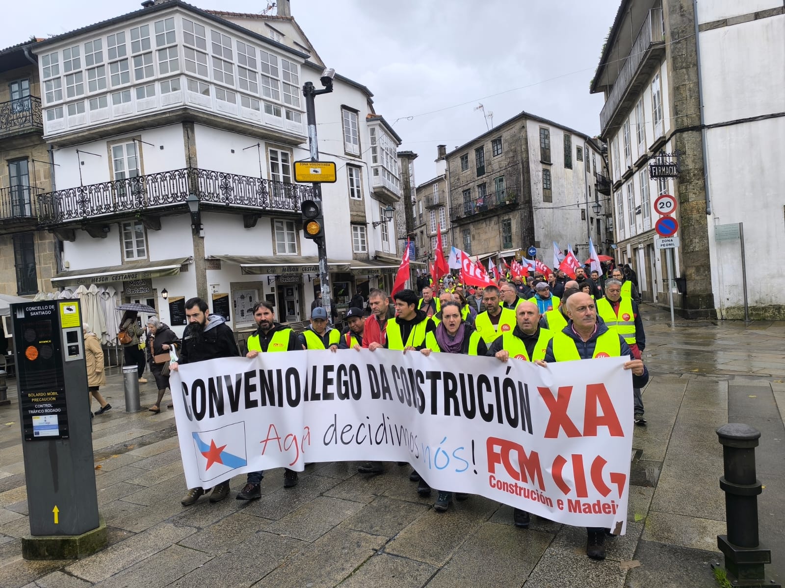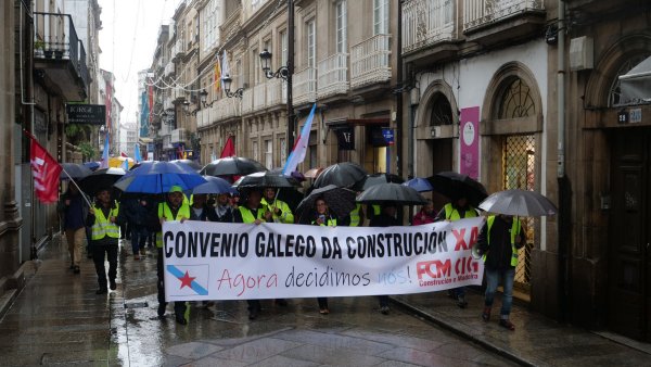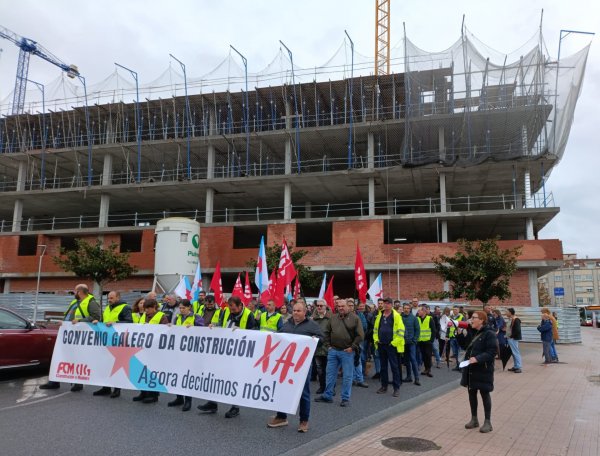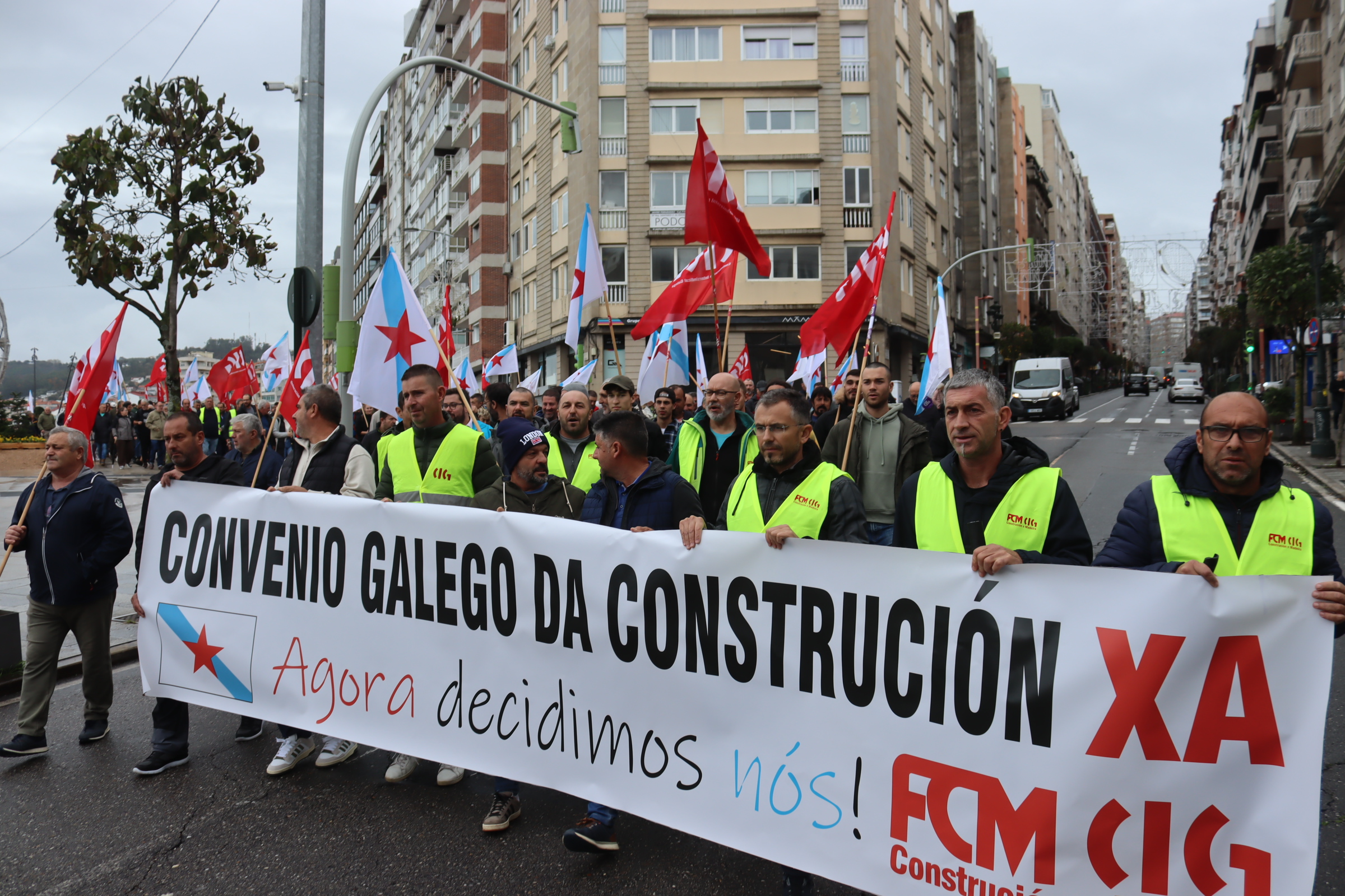 O persoal do sector galego da construción amosou hoxe o seu músculo e capacidade de loita ao paralizar todas as grandes obras (practicamente o 100% das públicas e un 70% das privadas) nunha xornada de folga histórica para reclamar un marco galego que blinde os convenios provinciais e permita avanzar nas condicións e materias que a día de hoxe están reservadas ao convenio estatal. O éxito do paro de 24 horas convocado pola CIG evidenciouse tamén nos numerosos piquetes informativos e nas concorridas manifestacións que tiveron lugar nas sete cidades ao mediodía, a pesar dos intentos de boicot da patronal, que onte mesmo adiantou a xuntanza prevista para hoxe e pactou con CCOO e UGT a suba salarial de 2025 e 2026 coa pretensión de desmobilizar o sector.