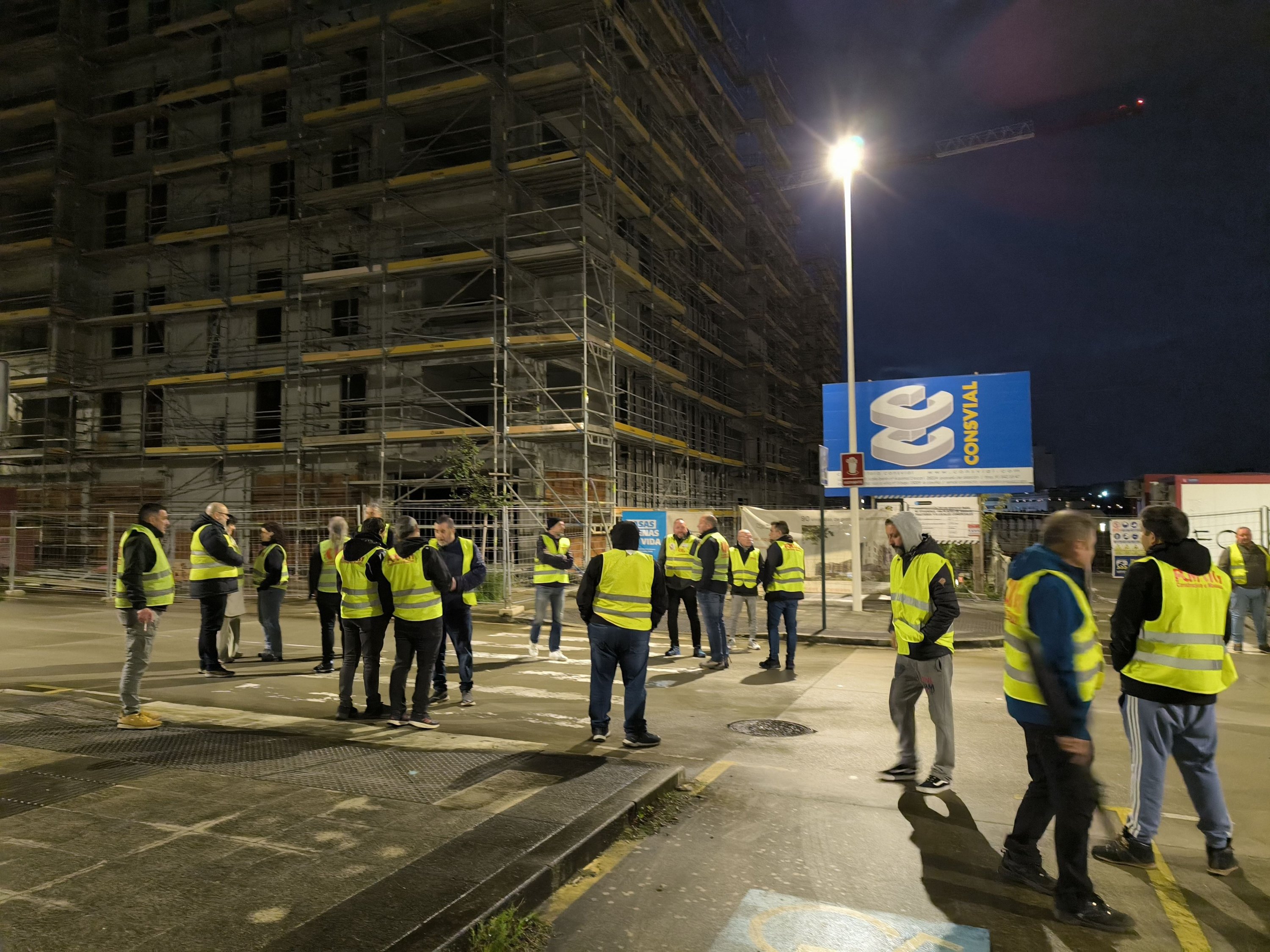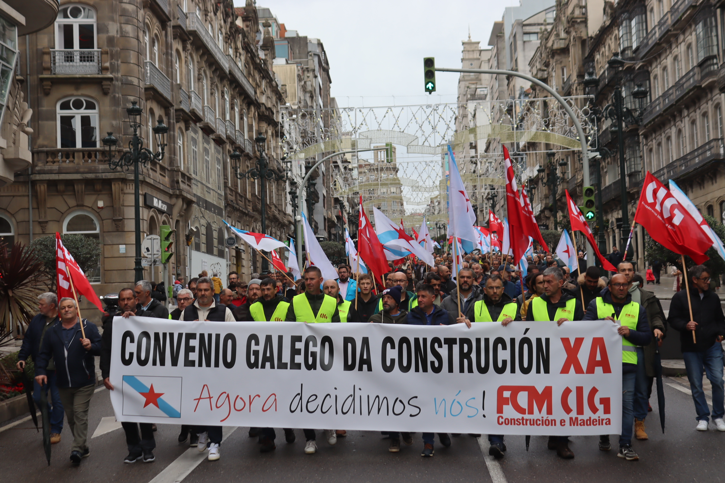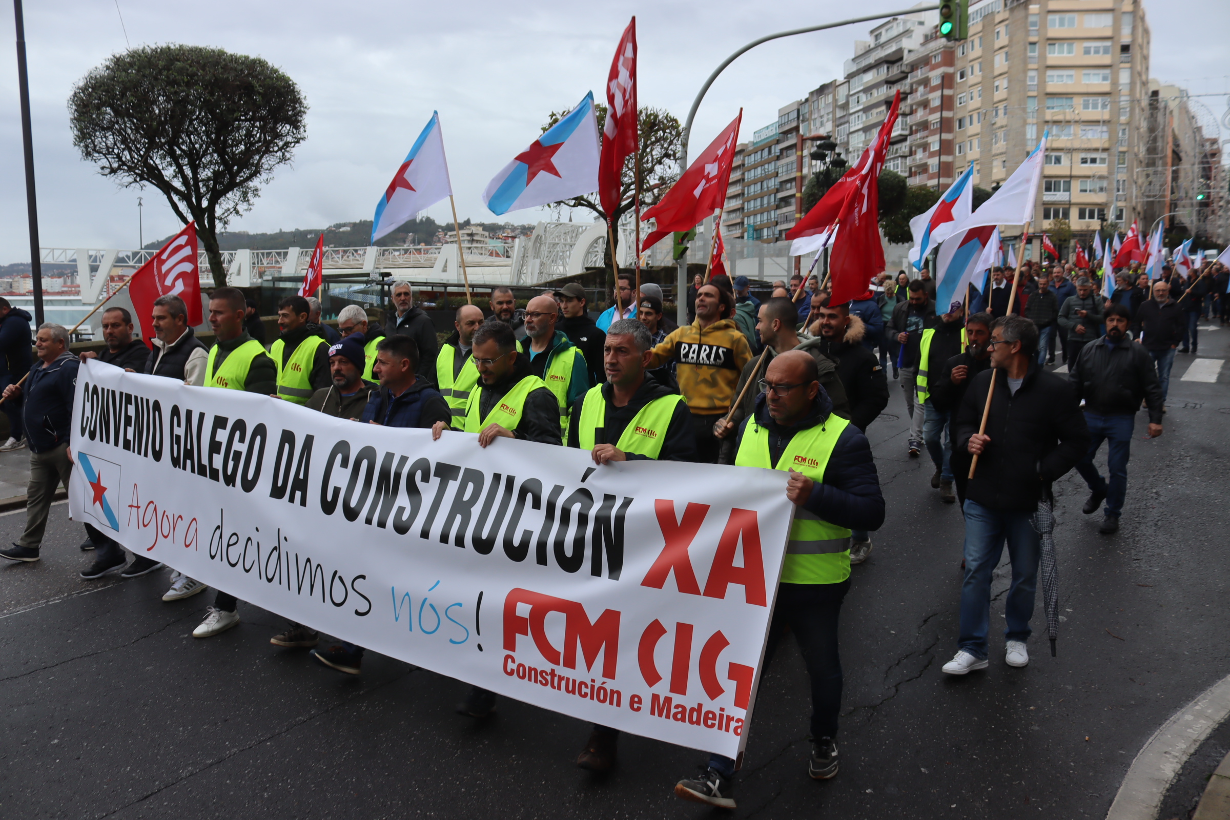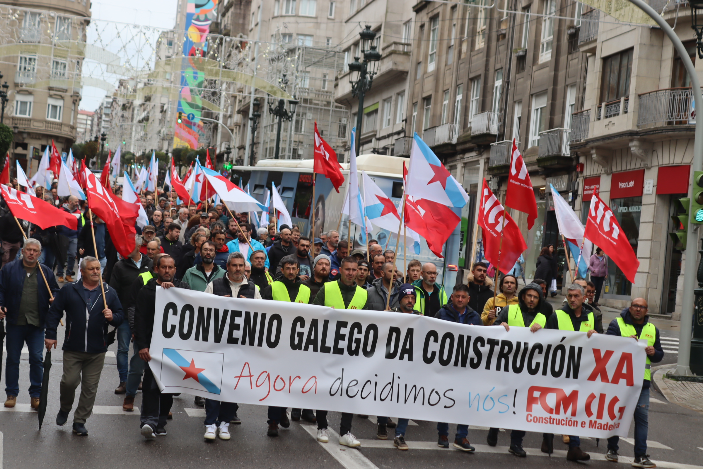 O persoal do sector galego da construción amosou hoxe o seu músculo e capacidade de loita ao paralizar todas as grandes obras (practicamente o 100% das públicas e un 70% das privadas) nunha xornada de folga histórica para reclamar un marco galego que blinde os convenios provinciais e permita avanzar nas condicións e materias que a día de hoxe están reservadas ao convenio estatal. O éxito do paro de 24 horas convocado pola CIG evidenciouse tamén nos numerosos piquetes informativos e nas concorridas manifestacións que tiveron lugar nas sete cidades ao mediodía, a pesar dos intentos de boicot da patronal, que onte mesmo adiantou a xuntanza prevista para hoxe e pactou con CCOO e UGT a suba salarial de 2025 e 2026 coa pretensión de desmobilizar o sector.